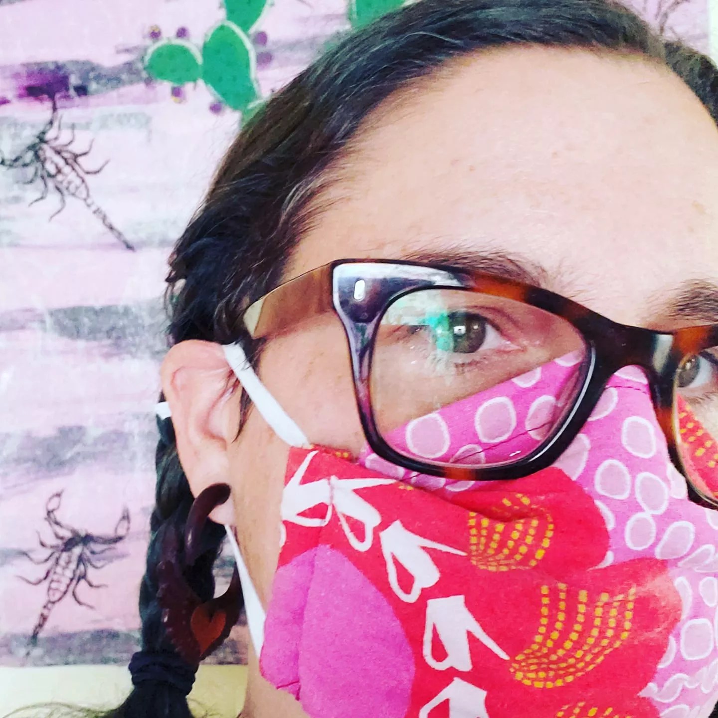 Tara Logsdon creates socially conscious art infused with teddy bear imagery, but her current focus is creating cotton face masks with desert-inspired designs. Every mask is unique, and you can find them on the Phoenix General website. Stacey Gordon has an eye for spotting fun fabrics. Stacey Gordon