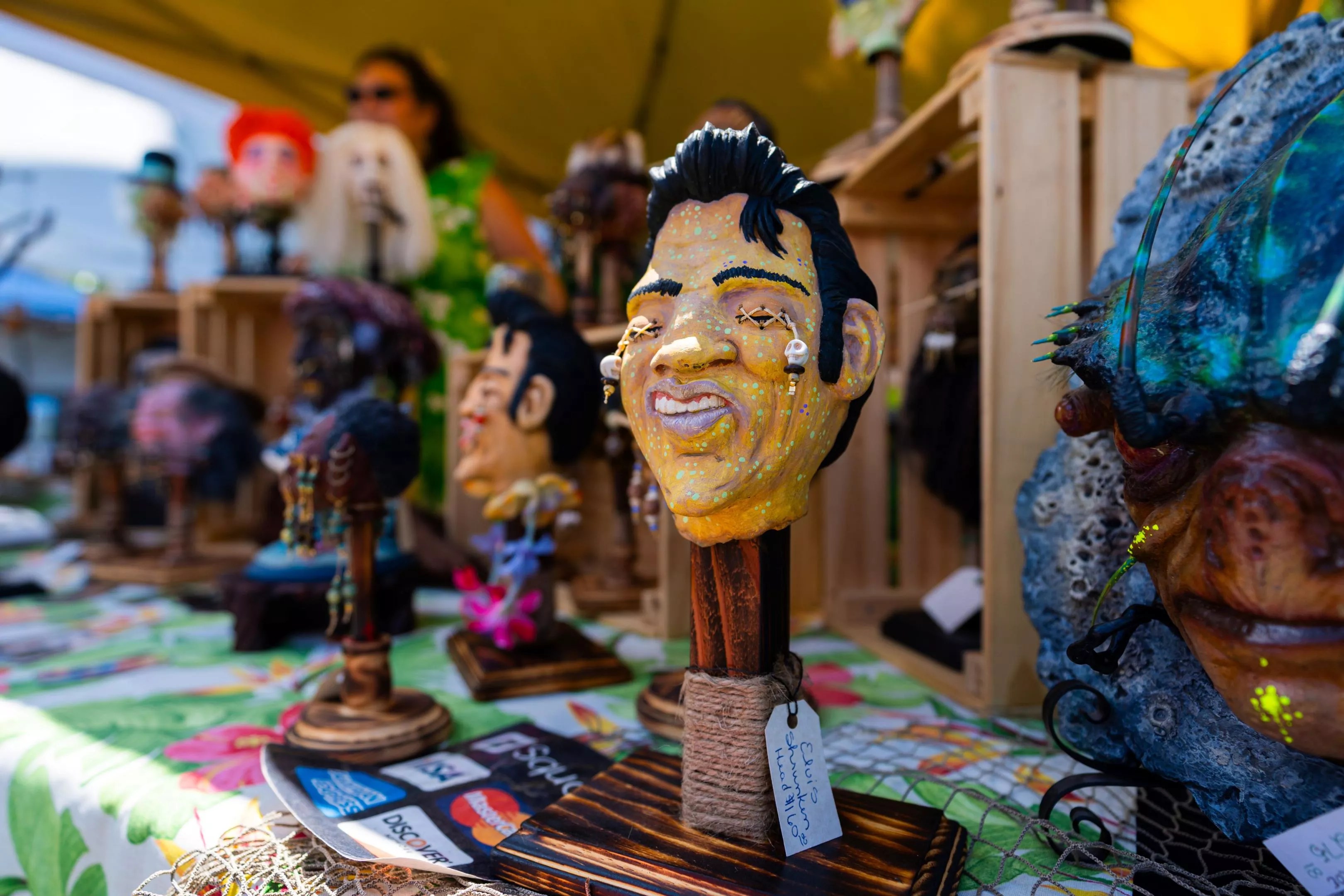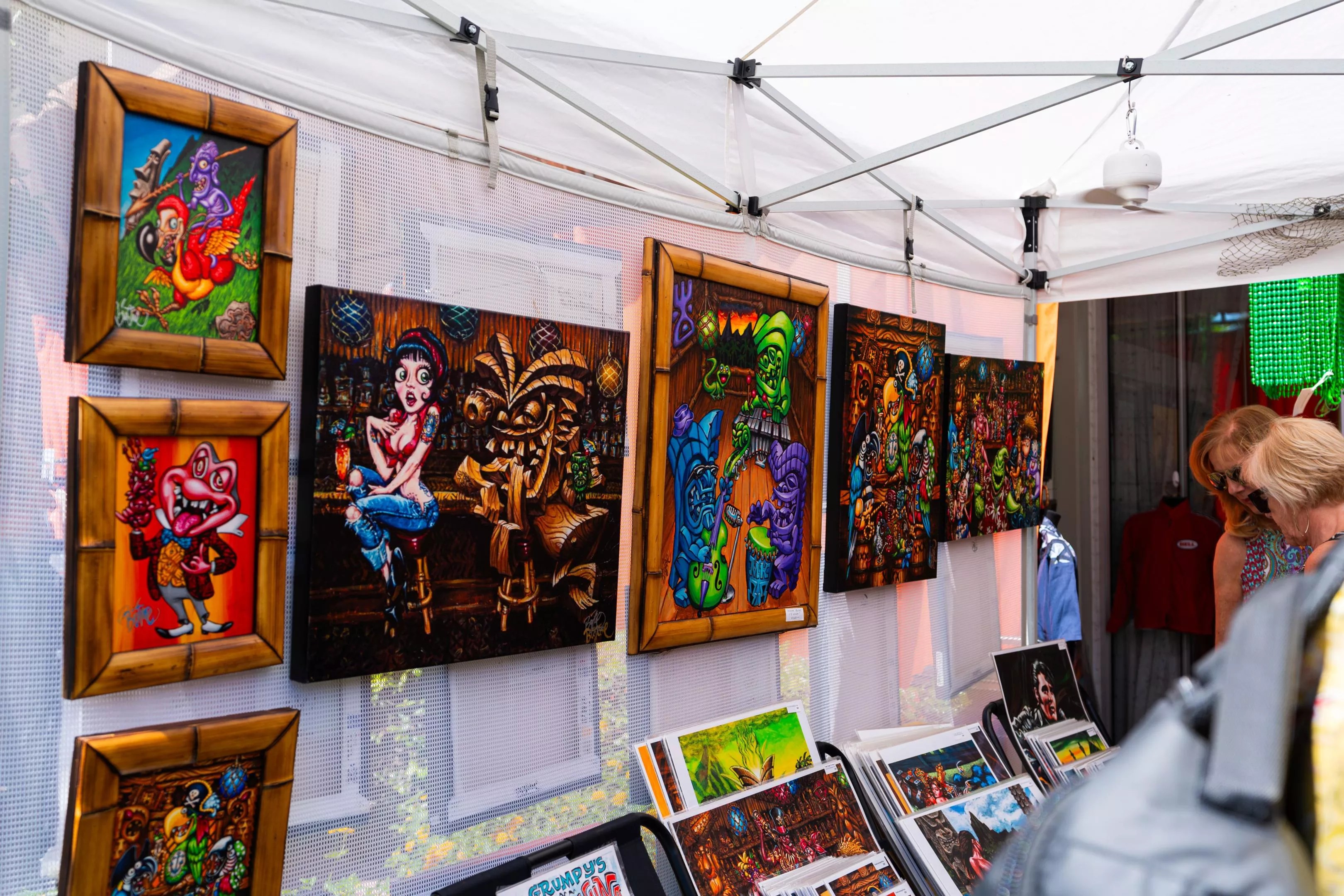 We stopped by the Arizona Tiki Oasis Marketplace, a public event held on the lawn of the hotel, to check out the scene.
