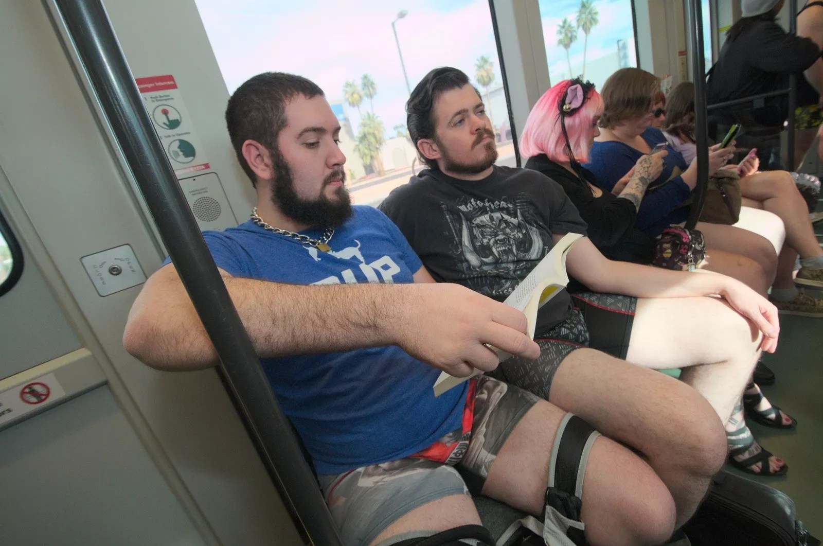 “While you’re riding, act as if nothing strange is going on. Do what you’d normally do on the light rail – listen to your iPhone, read a book, etc. You have no idea why others are not wearing pants. If anyone asks, have a simple excuse prepared for why you’re not wearing pants – you were hot, you forgot them, etc.”