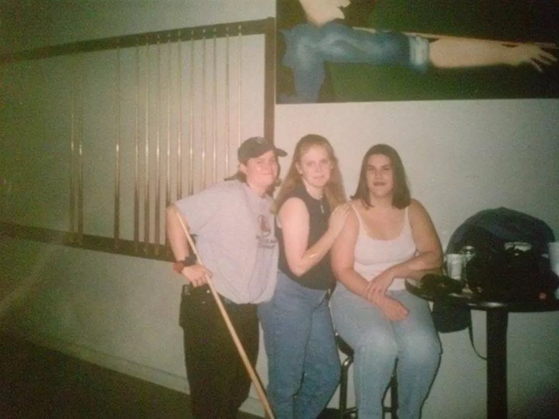 Crystal Tod-Smith, center, with friends inside the pool hall at Video Round-Up in Scottsdale.
