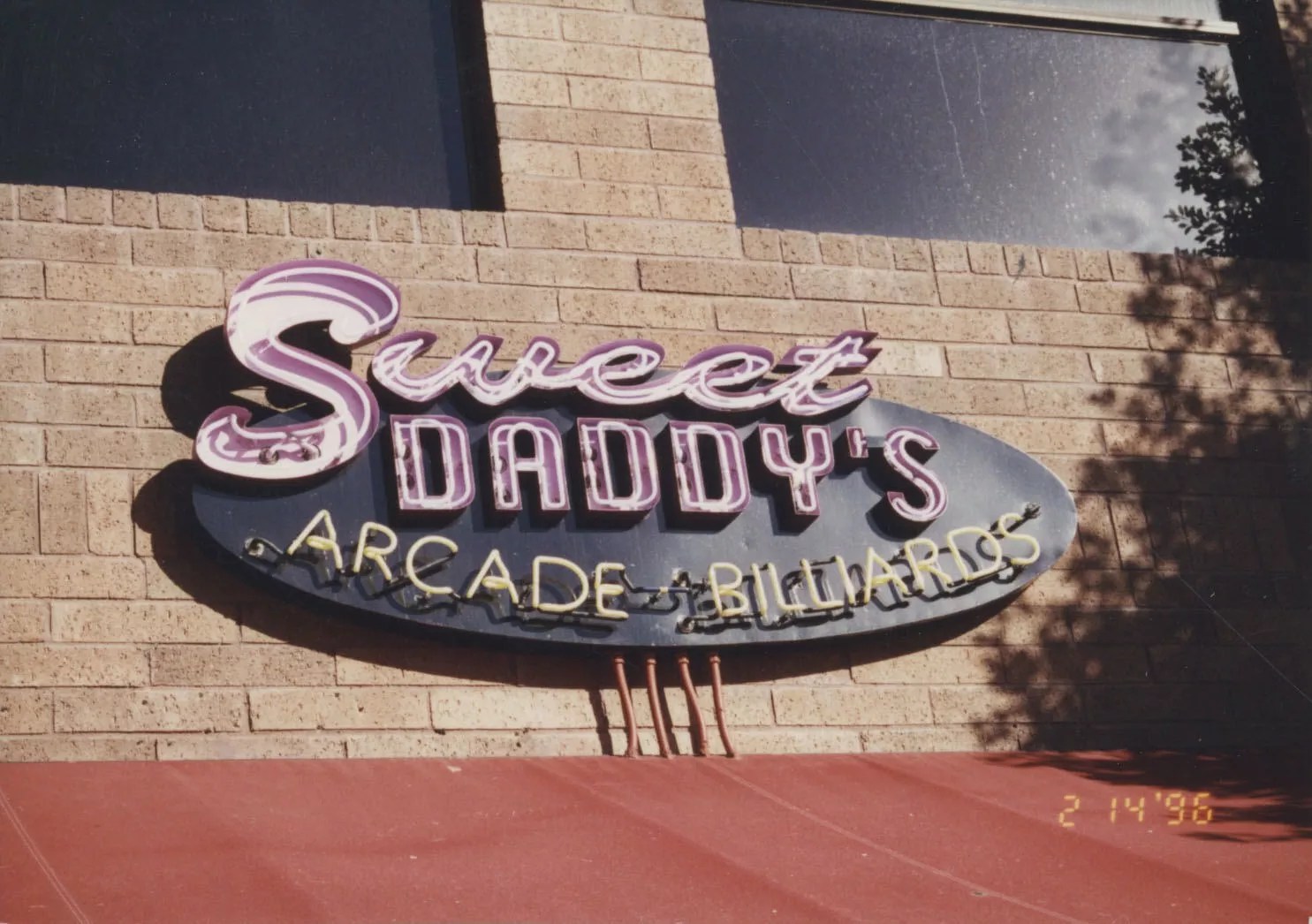 The sign for Sweet Daddy’s, an arcade and pool hall located along Mill Avenue in downtown Tempe that operated in the ’90s.