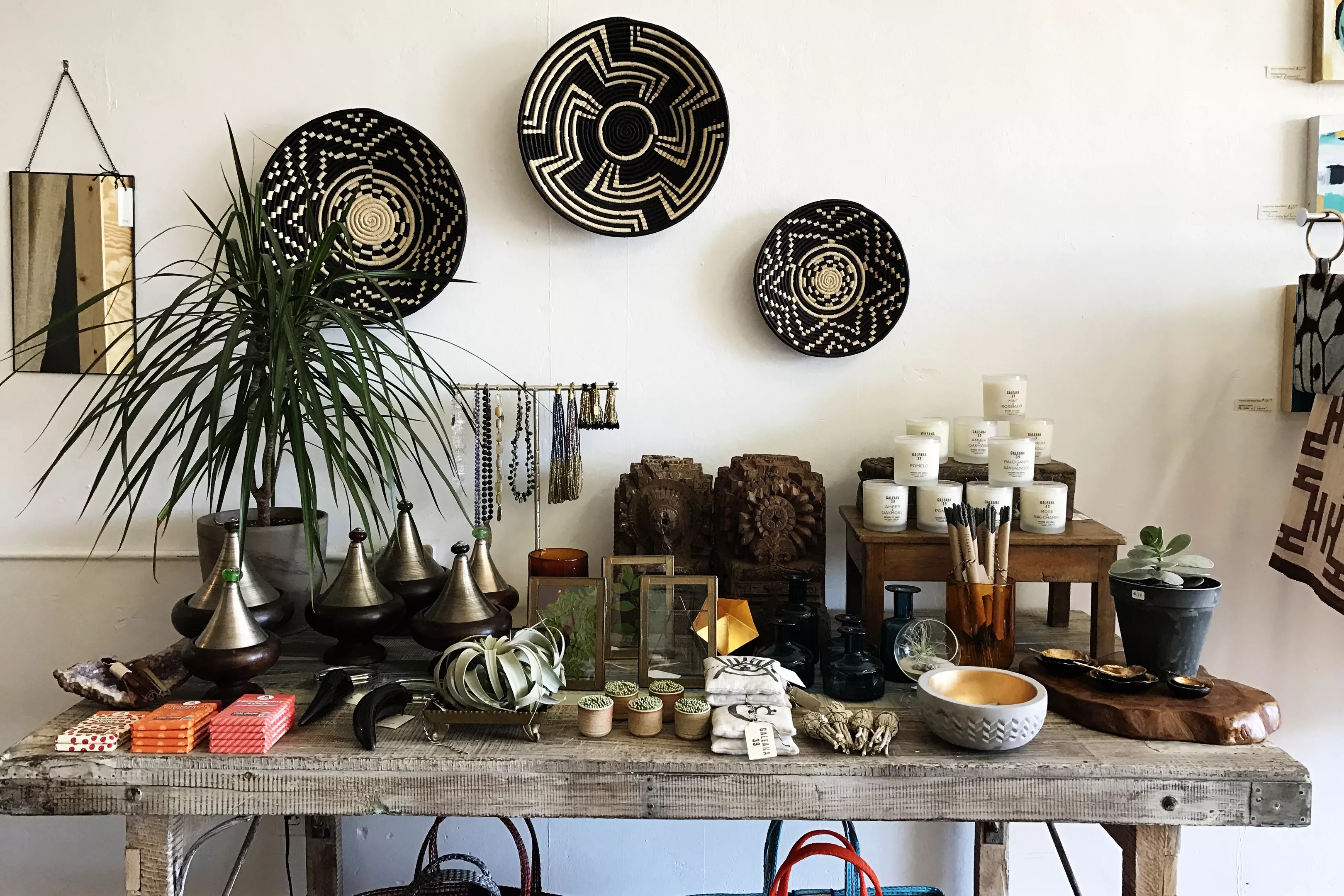 Grab a hand-woven basket from Uganda, a bold statement necklace, a few patterned throw pillows, and a Rose & Nag Champa soy candle, and you’re ready to host.