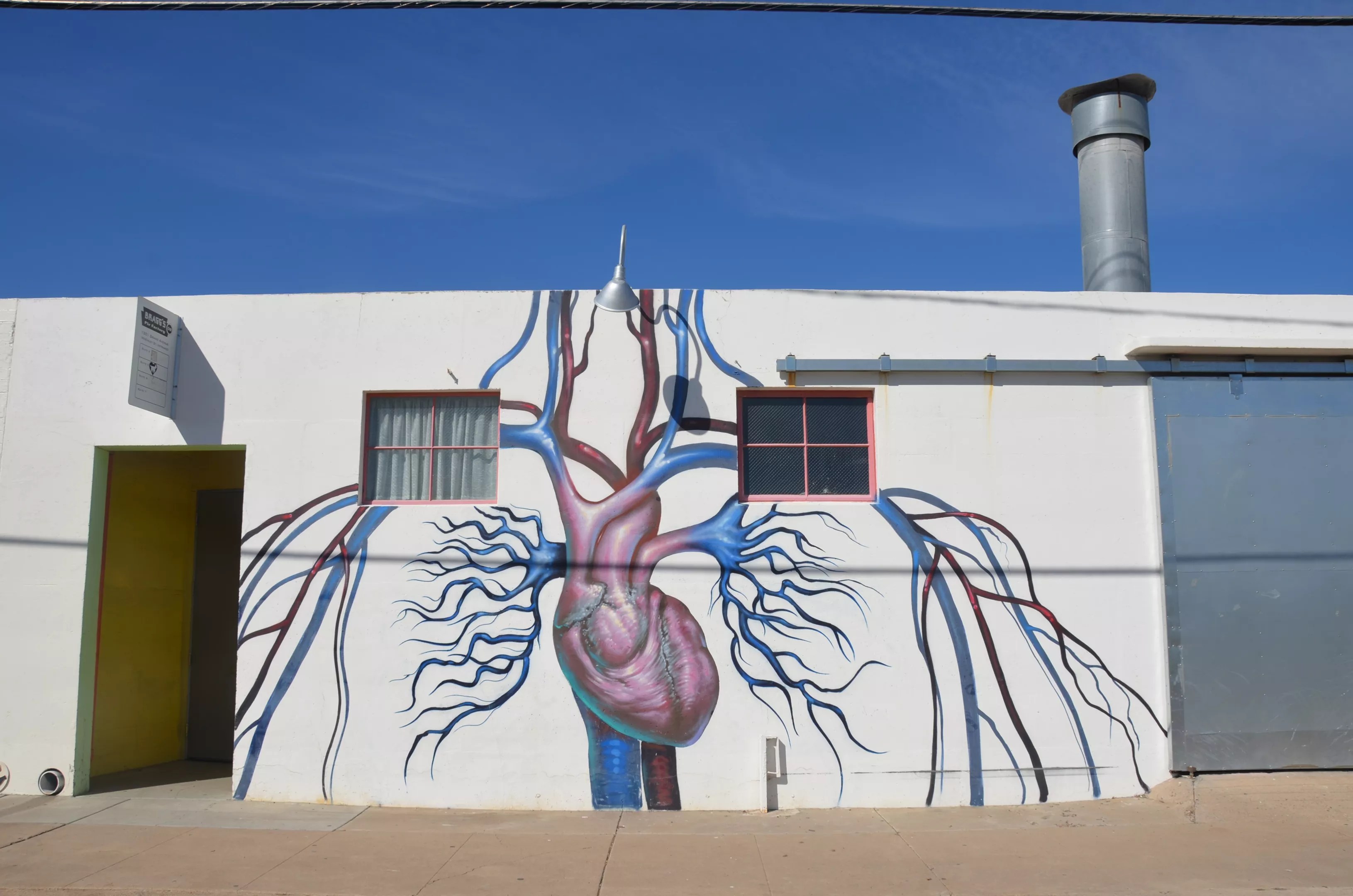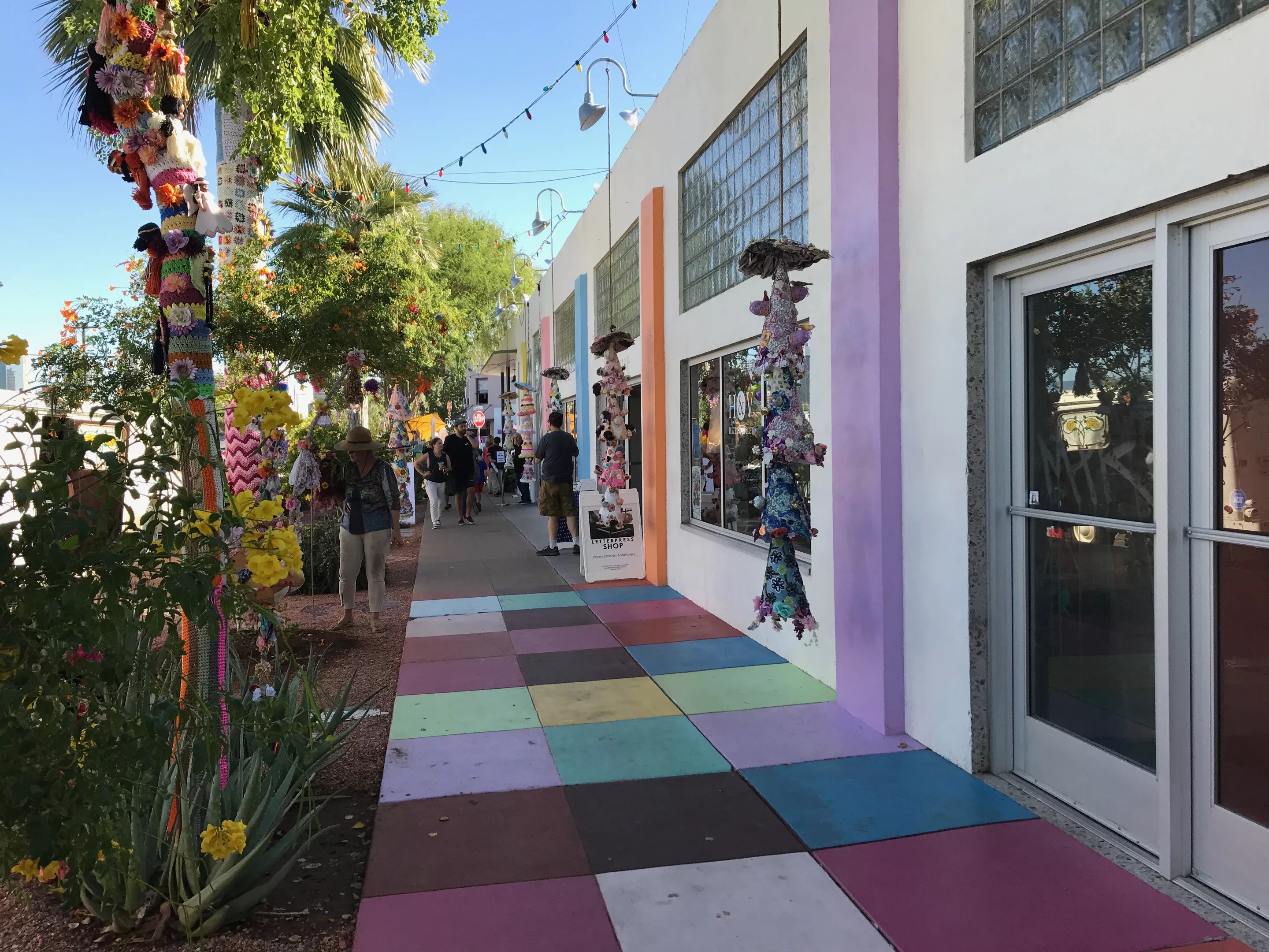 Also look for Colibri’s migration-themed mural on the side of the pastel-colored La Melgosa building, and Laura Spalding Best’s mural featuring circular vignettes of real and imagined Phoenix landscapes at the Marisol Credit Union building.
