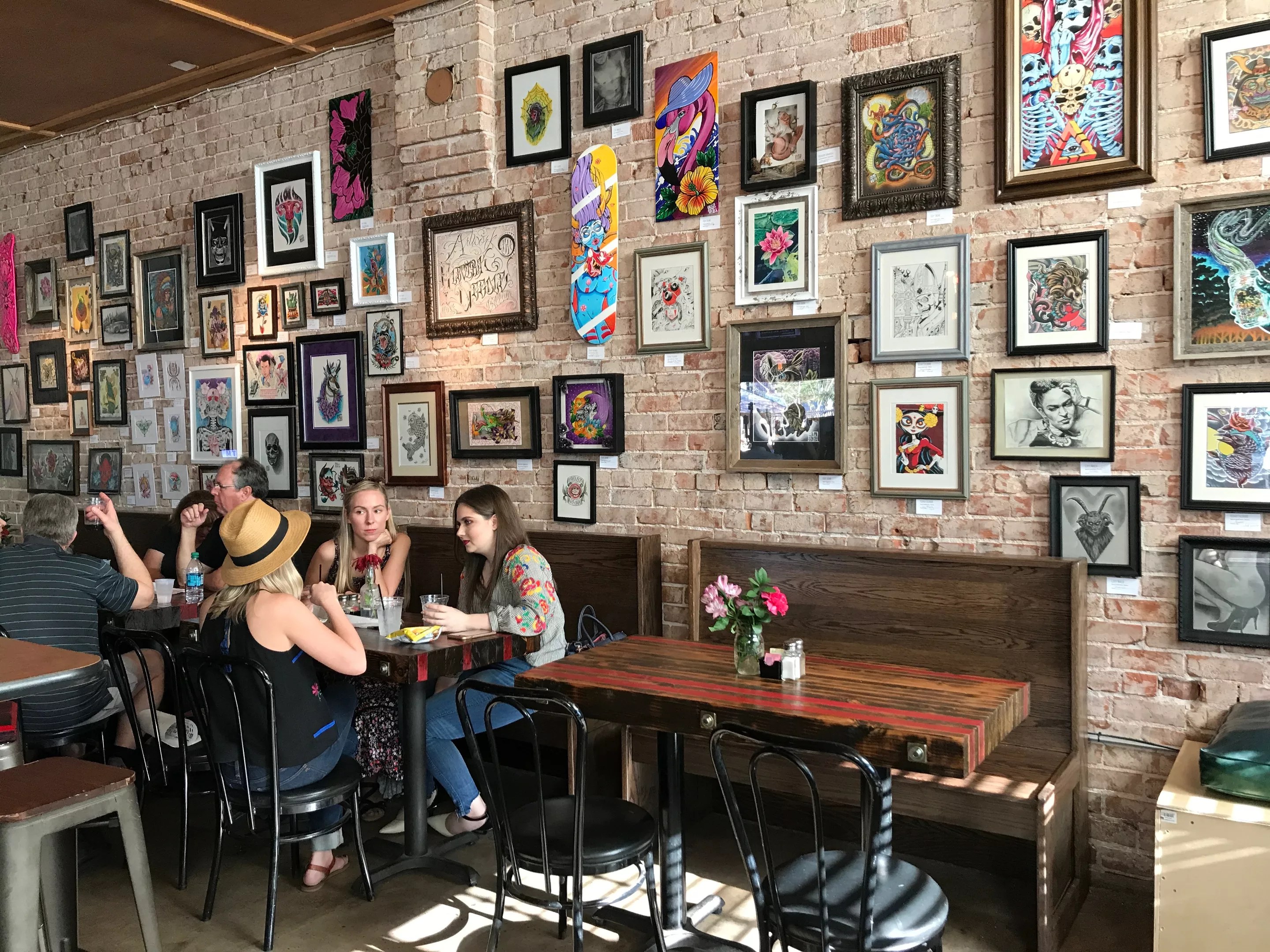 Getting around: Look for free, on-street parking along Grand Avenue and its many side streets. Parking lots are located near Bragg’s Pie Factory, Bikini Lounge, Unexpected Gallery, La Melgosa, and The Rev (formerly Paper Heart Gallery).