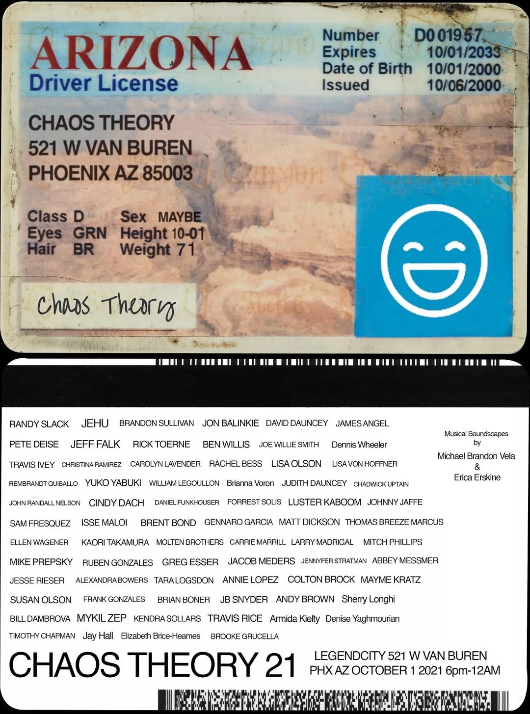 “Chaos Theory” is scheduled from 6 p.m. to midnight on Friday, October 1. The location is Legend City Studios, 521 West Van Buren Street. The free exhibit will also be open at 2 p.m. on Saturday, October 2.
