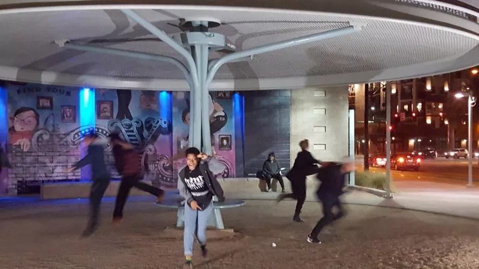 For the fifth annual Light Rail Plays, Rising Youth Theatre presented its first Platform Tour, featuring eight five-minute works performed at Valley Metro light rail stations in Phoenix, Mesa, and Tempe. The closing performance, held Sunday, December 10, at the Central and Roosevelt station in Roosevelt Row, was a poignant and playful nod toward shared humanity – complete with live music, movement, spoken word, and theater performed by professional artists and local youth. Co-curated by Xanthia Walker and Liliana Gomez, the tour affirmed creativity’s role in sustaining thriving civic spaces and conversations, and revealed the space’s potential as an ongoing performance platform. Lynn Trimble