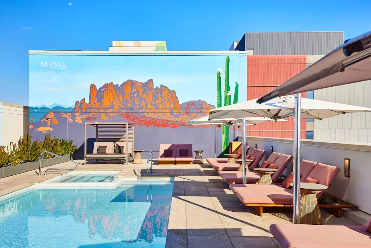 480-536-8900For a pool scene with Midcentury Modern appeal, check out Rise Uptown Hotel. The pool boasts a chic retro vibe, striped pool loungers and plenty of umbrellas to keep things shady. Next to the pool is Lylo Swim club, a bar/restaurant known for tropical cocktails and Latin-inspired eats.