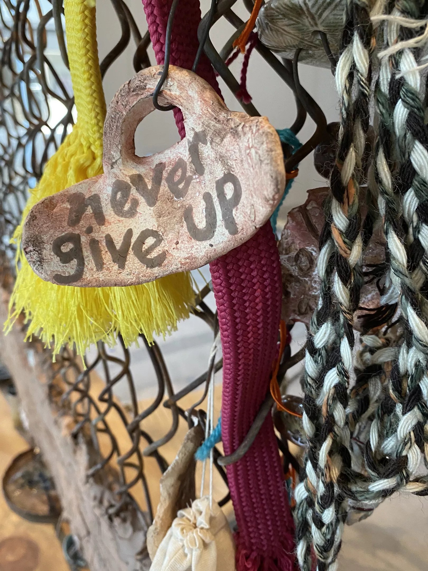 Detail of the Good Trouble Bucket installation created by Joan Baron and Gloria Martinez-Granados.