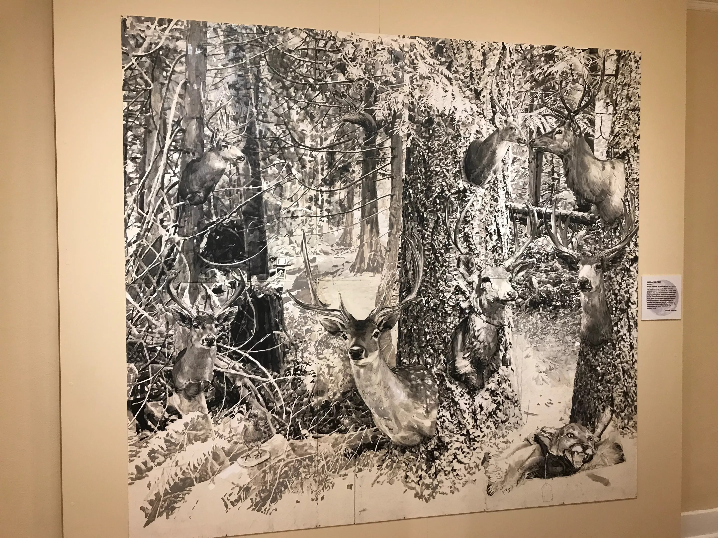 For the second in a series of three “Tikkun Olam: Repairing the World” exhibitions at the Cutler-Plotkin Jewish Heritage Center, Beth Ames Swartz invited four women artists to show work exploring humanity’s impact on the environment, including animal life. This piece, featuring taxidermy animals placed in a forest setting, is by Phoenix artist Carolyn Lavender. The exhibit runs through January 30, 2018.