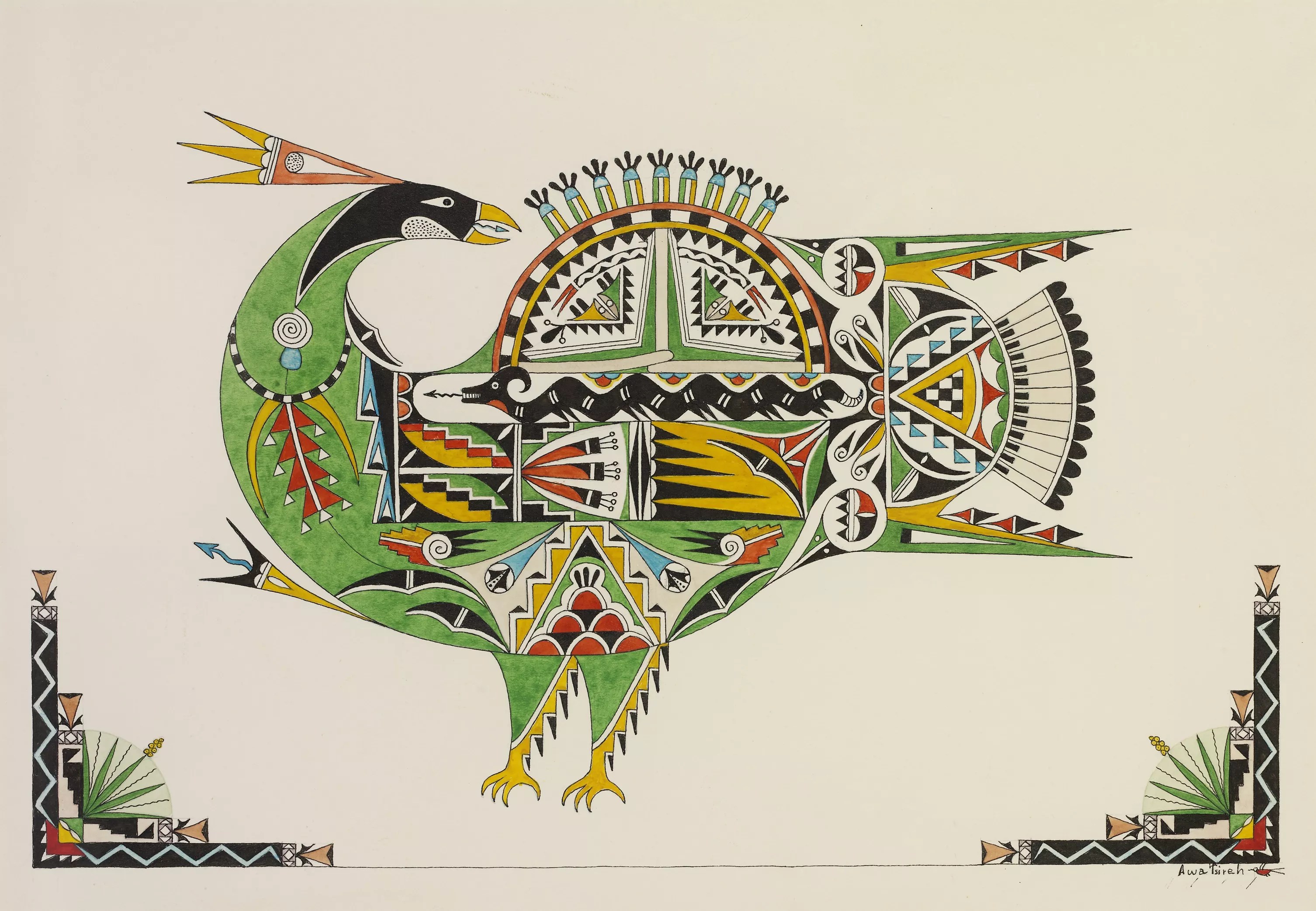 Awa Tsireh (Alfonso Roybal), San Ildefonso Pueblo, Mystical Bird, c. 1940.