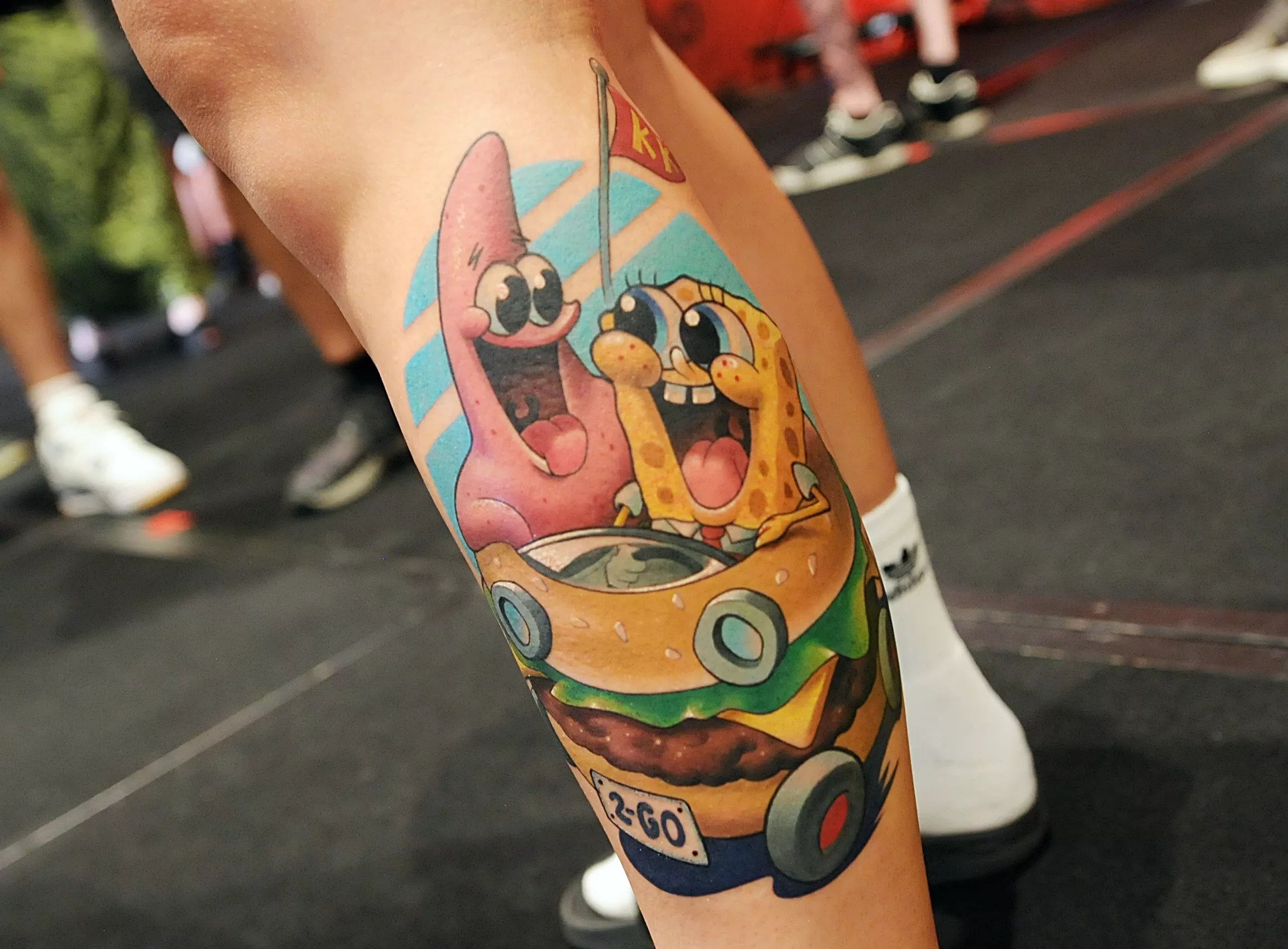 Artist Dylan Loos recreated a scene from the first SpongeBob SquarePants movie on the leg of Chandler resident Crystal Clay.