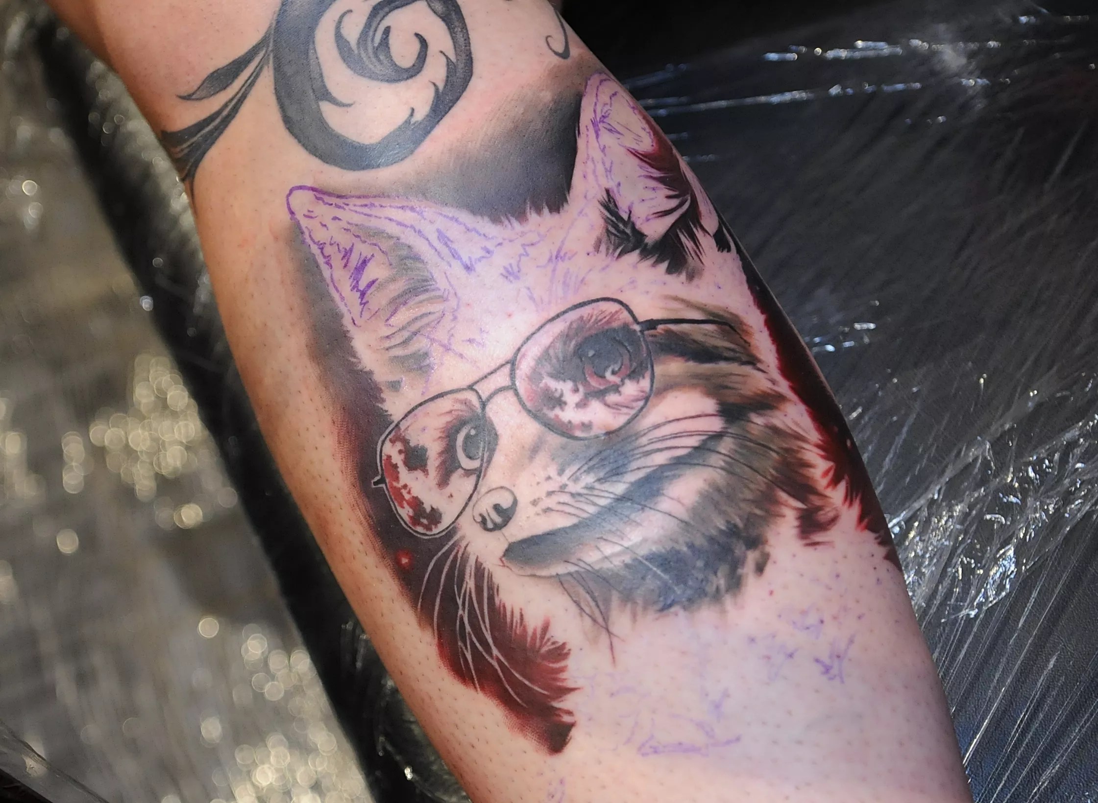 A Hell City attendee told us this tattoo was inspired by “wanting something funny, like an animal wearing glasses.”