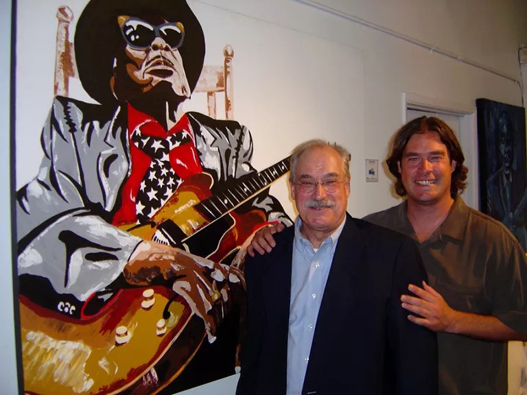 Brian Banash, right, with his father, George, in front of a work titled “Delta Blues No. 6.”