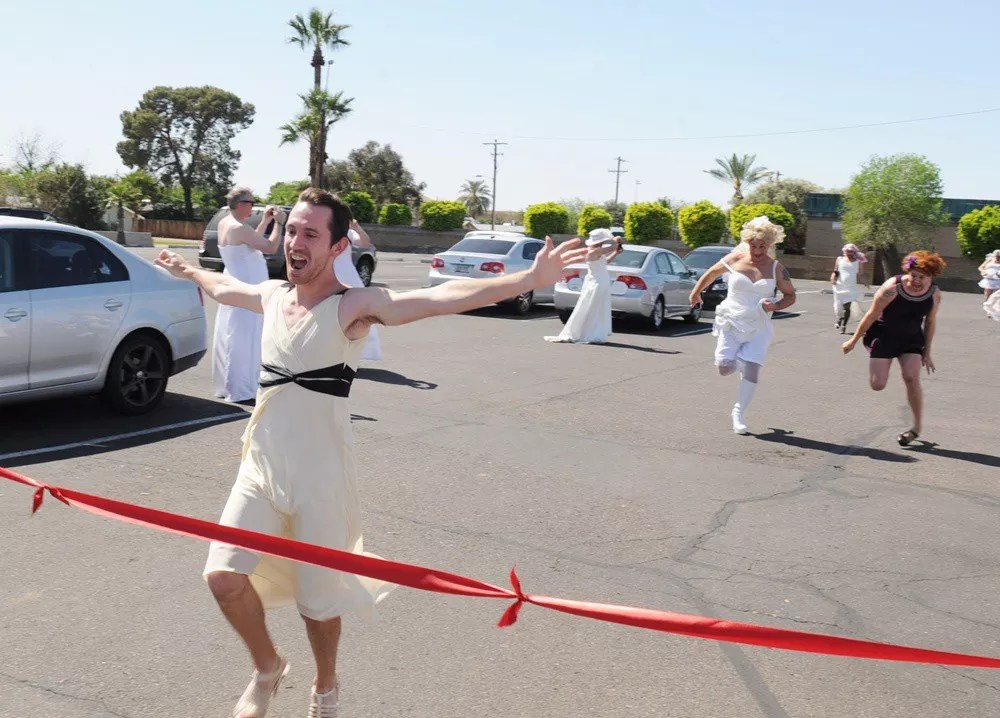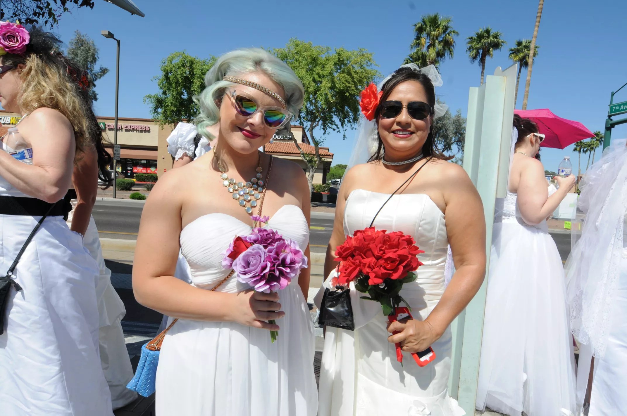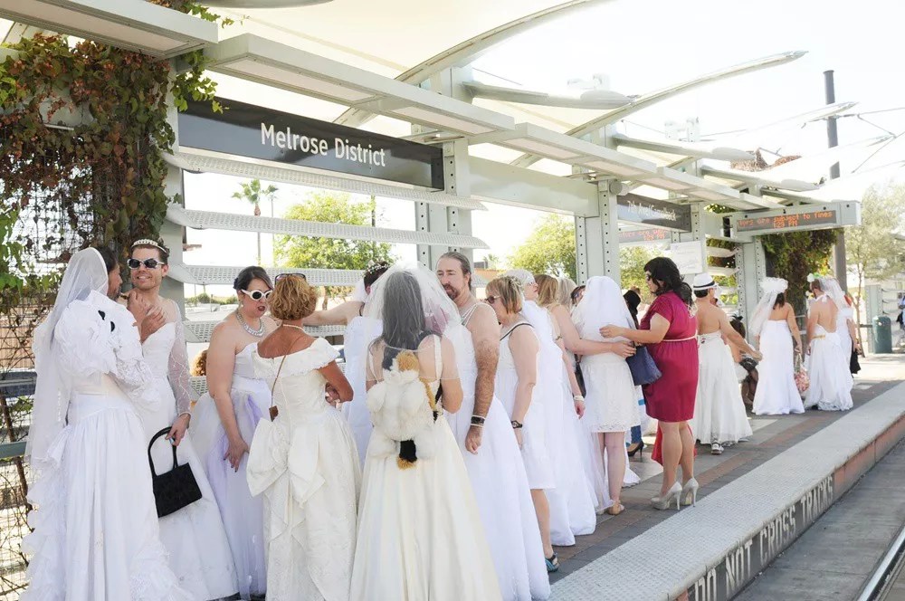 It’s an annual bar crawl that spoofs wedding culture and the Ides of March and happens in cities across the U.S. (including here in Arizona) every March. The gonzo event is organized by chapters of the Cacophony Society, the infamous urban pranking group with branches worldwide, and involves hundreds men and women wearing goofy and glitzy bridal dresses while engaging in an afternoon of drinking.