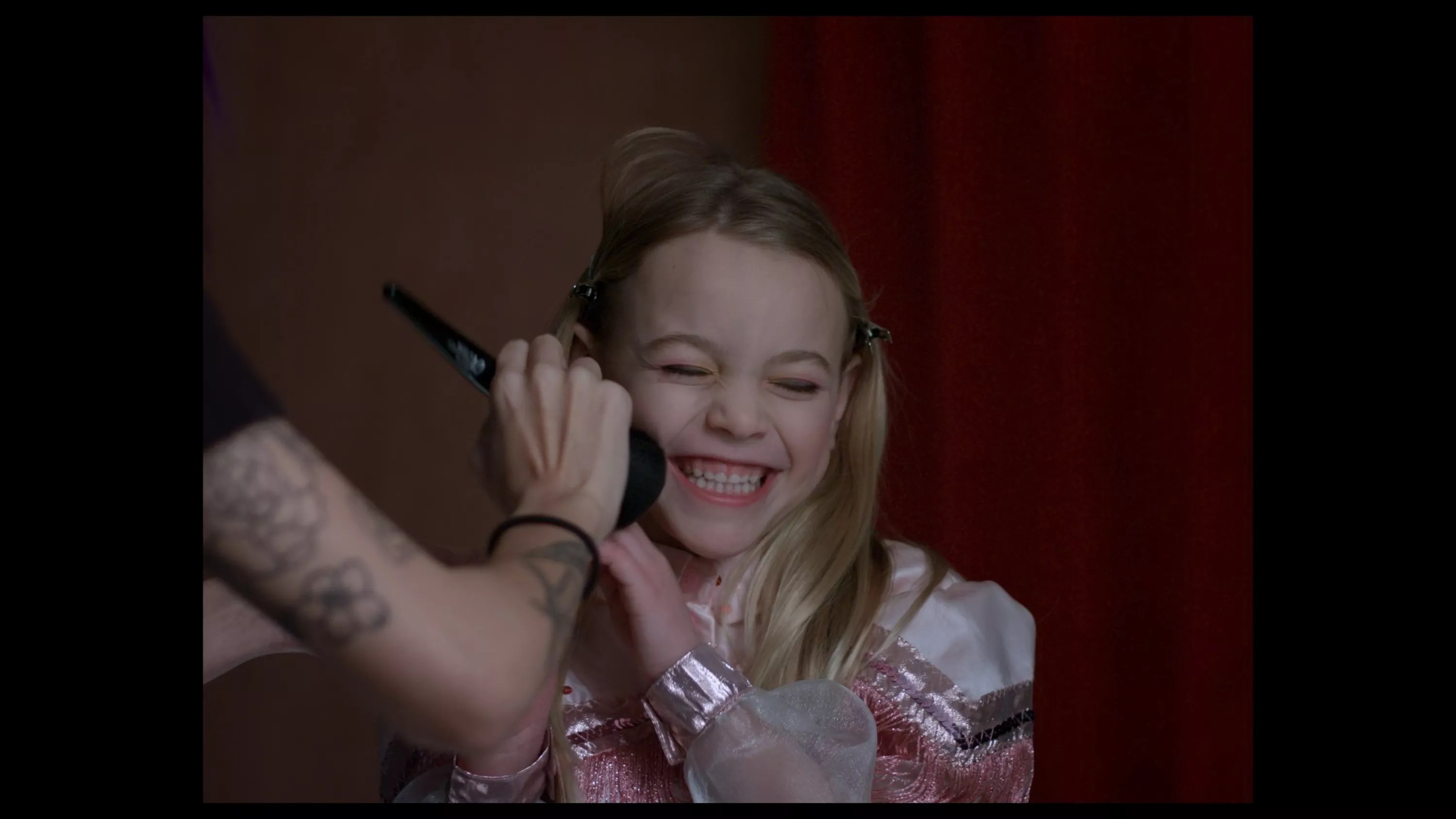 Despite the title, Green is casting JonBenet’s parents rather than the victim herself. She interviews only adults, though she still opens the film on a flock of ersatz JonBenets, present-day tykes in star-spangled leotards and makeup as thick as a Wendy’s hamburger patty, a disturbing re-creation of what was already a parody of feminine purity and perfection. (One potential Patsy says, of pageant contestants, “A lot of those girls go on to do great things – or work at Hooters.”) Late in the film, as a cruel jolt, Green occasionally has one of these wee girls let loose with a scream, but she otherwise avoids the most obvious provocations.