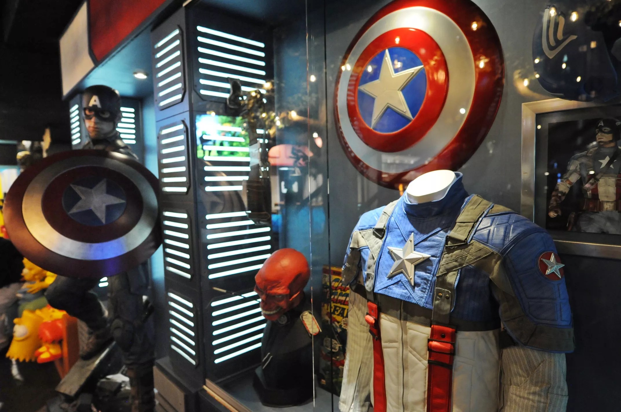 There are also displays devoted to characters like the Wonder Woman, The Joker (specifically the Heath Ledger version from The Dark Knight), Wonder Woman, Green Lantern, and the MCU’s Captain America. A full-sized Silver Surfer also hangs from the ceiling.