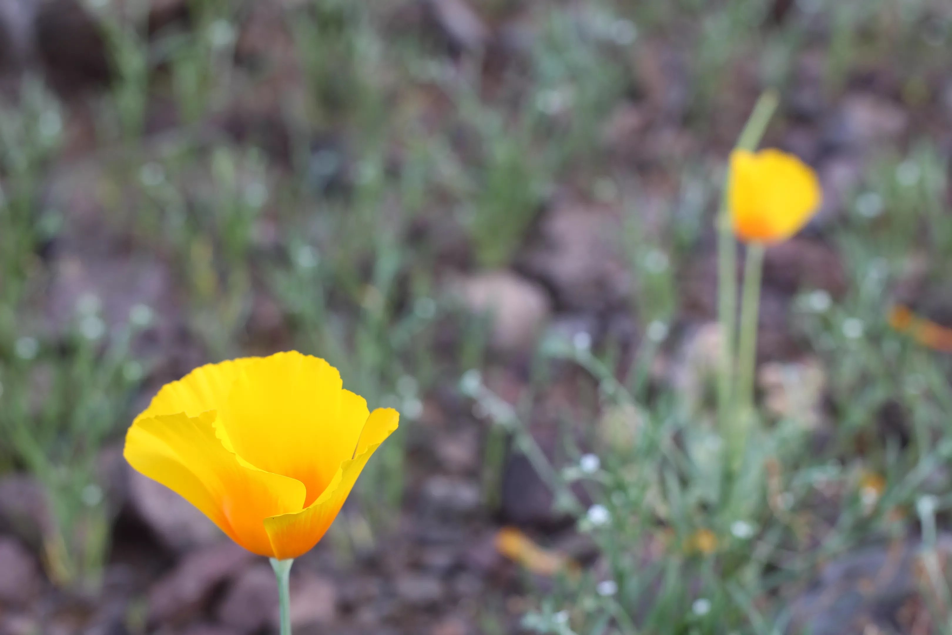 It took me about an hour to get down. Back at the trailhead, I walked back up the beginning slope to check out the wildflowers I’d noticed on the way up. Sometimes, the lower slopes of Picacho look like a colorful carpet. On this trip, the crop seemed lighter and less varied than in past years, with the Mexican gold poppy most prevalent. A park ranger I talked with later said he didn’t know whether peak wildflower season had already come and gone, adding that a good spring rain could bring out more flowers.