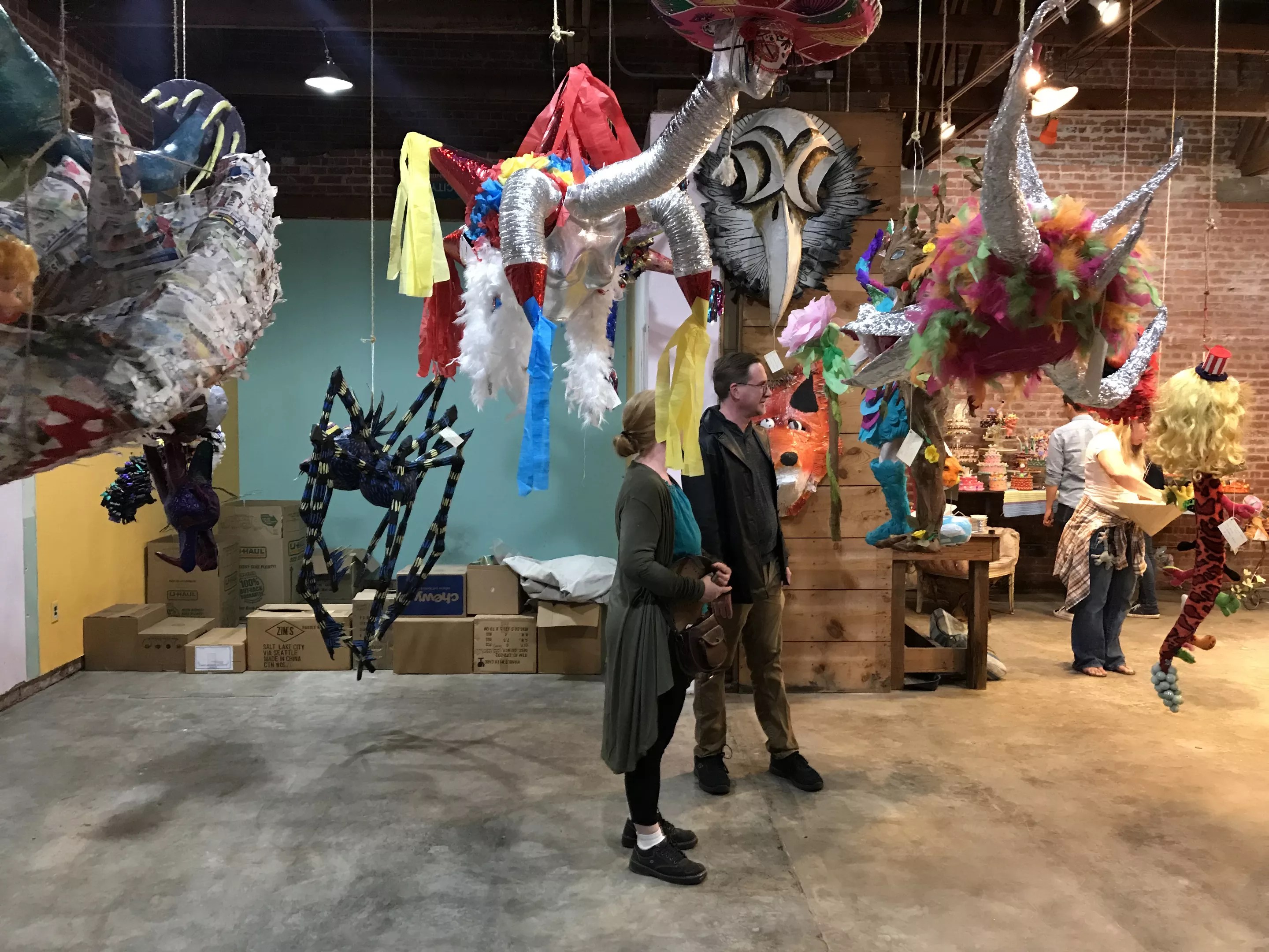 Creative types converged on a funky art space called Weird Garden Friday night, eager to see an eclectic mix of piñata-style artworks made by artists and community members. Beatrice Moore, a longtime staple of the downtown arts scene, stood washing her hands over a large sink, as people milled through the space, exploring piñatas shaped like everything from roof rats to Donald Trump.