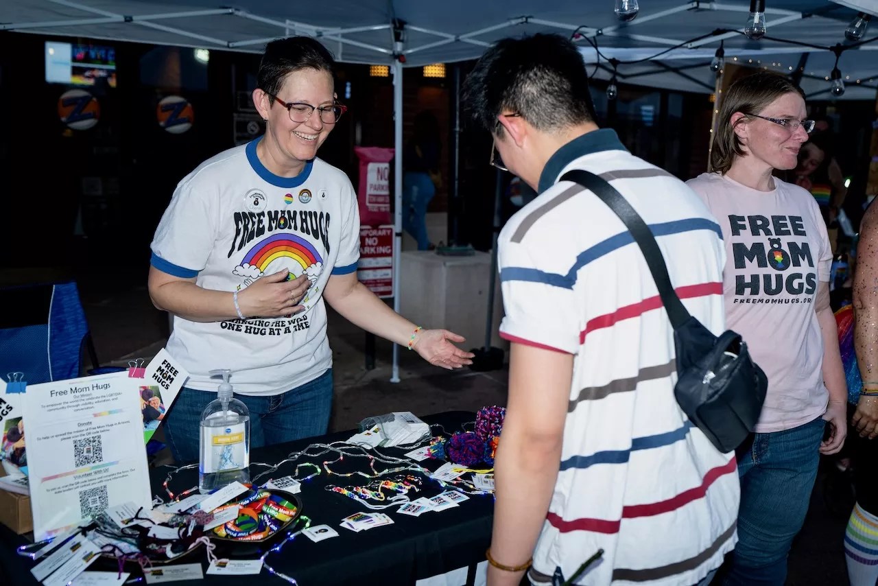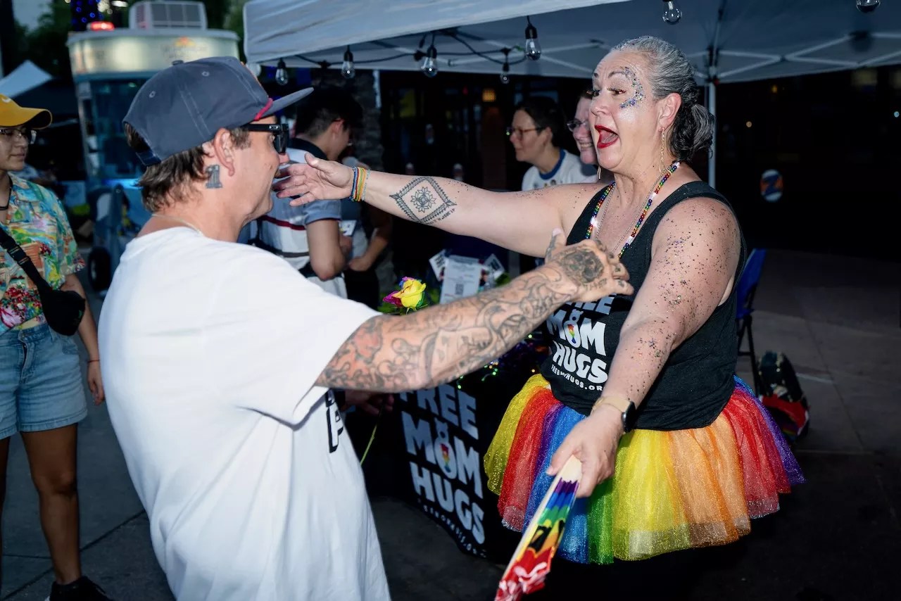 Pride event staple organization Free Mom Hugs welcome attendees to Tempe’s Pride Party.
