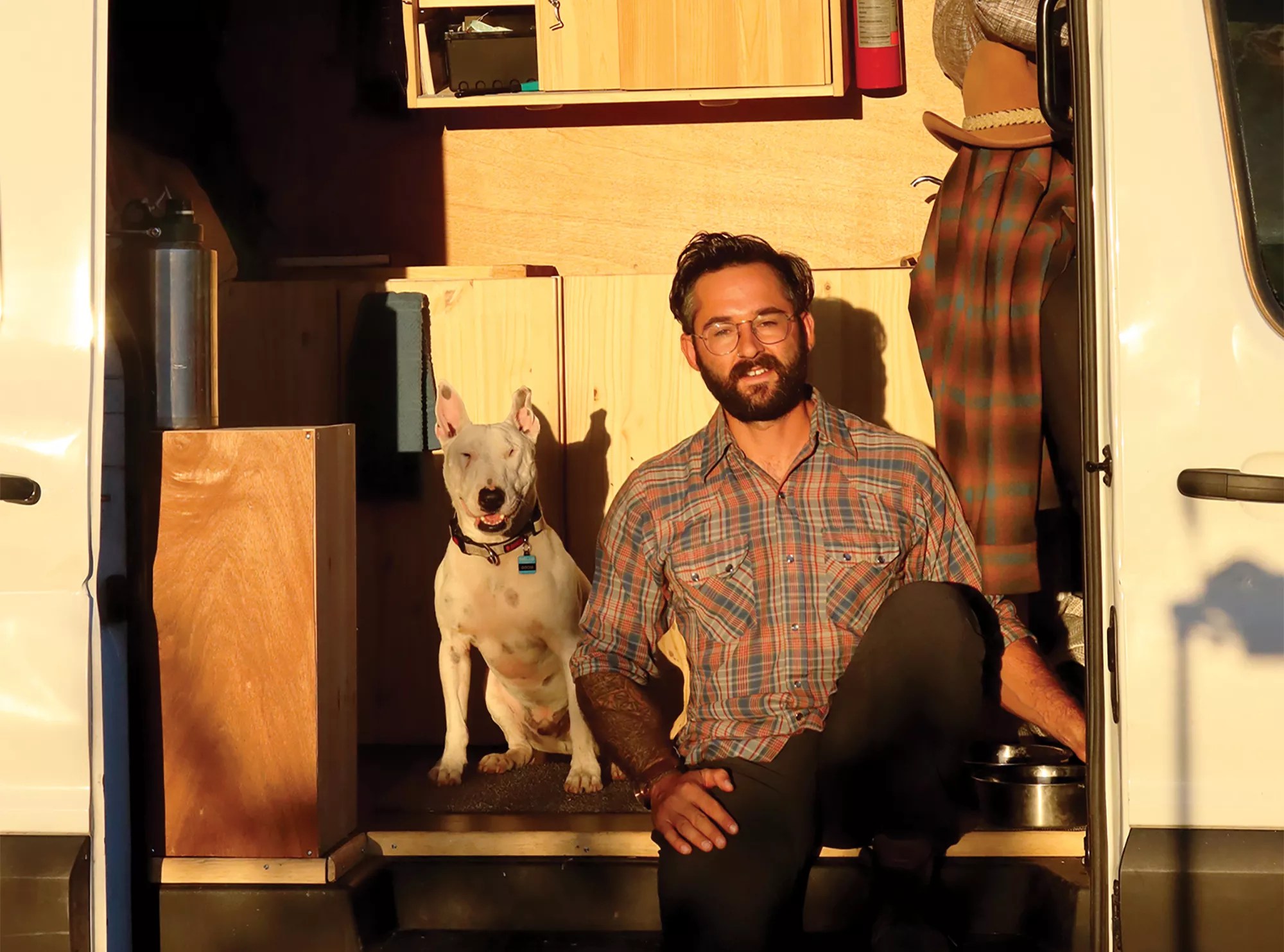 But Caruso also credits his dog, Gustavo, a bull terrier rescue to whom the book is dedicated, as his “co-creator.” The two of them traveled the entire time together in a converted van with solar panels, but sadly, Gustavo passed away in November 2022 from a growth in his brain.