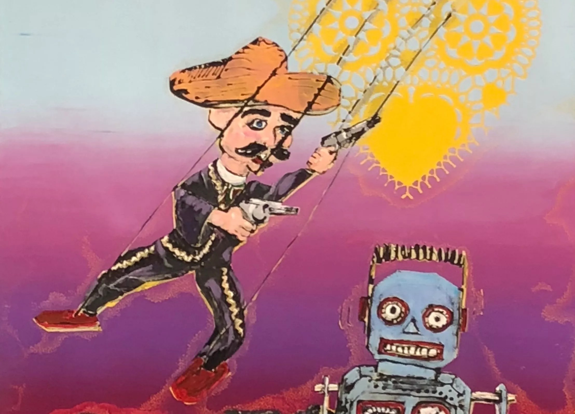 Work by Adam “A-Bomb” Vigil exhibited last December at Sagrado Galleria.