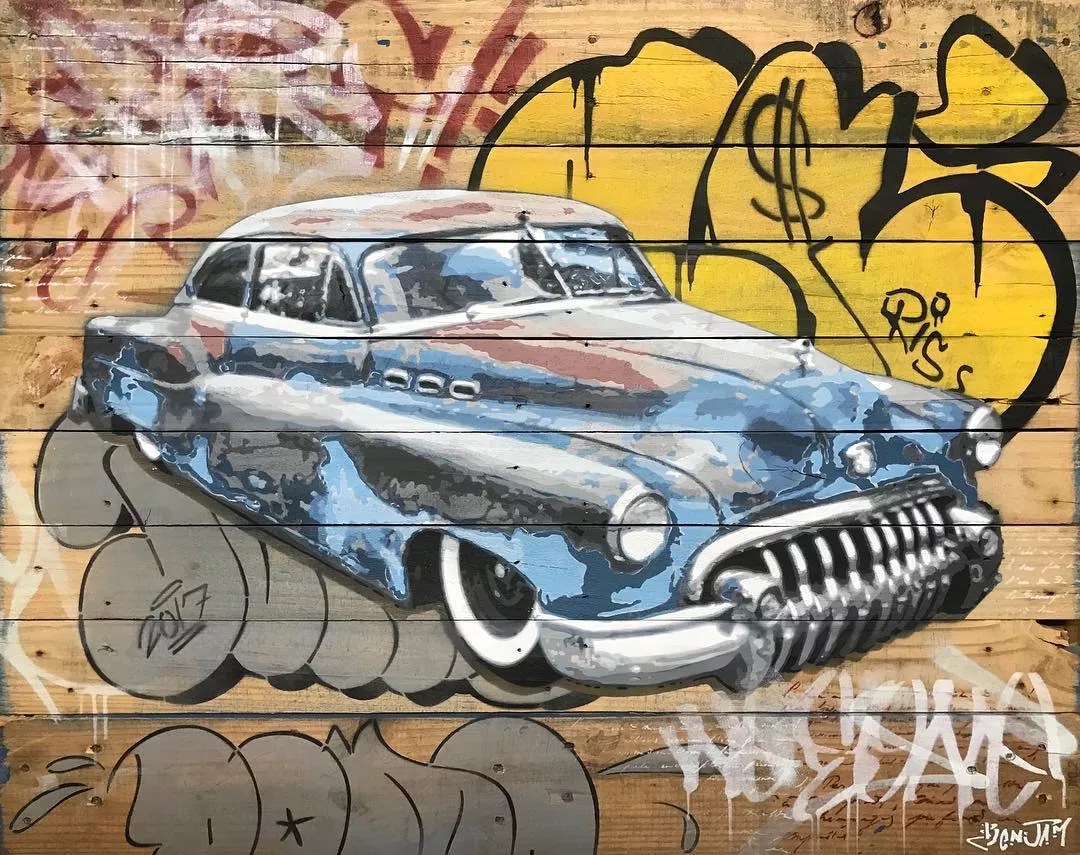 See work by guest artist Benjamin Goens (a.k.a. Benjam), who uses materials including spray paint and reclaimed wood pallets, in an exhibition presented by {9} Collective. First Friday hours at {9} The Gallery are 6 to 10 p.m. The evening also includes live music by Kody Black. Find more details on the Facebook event page.