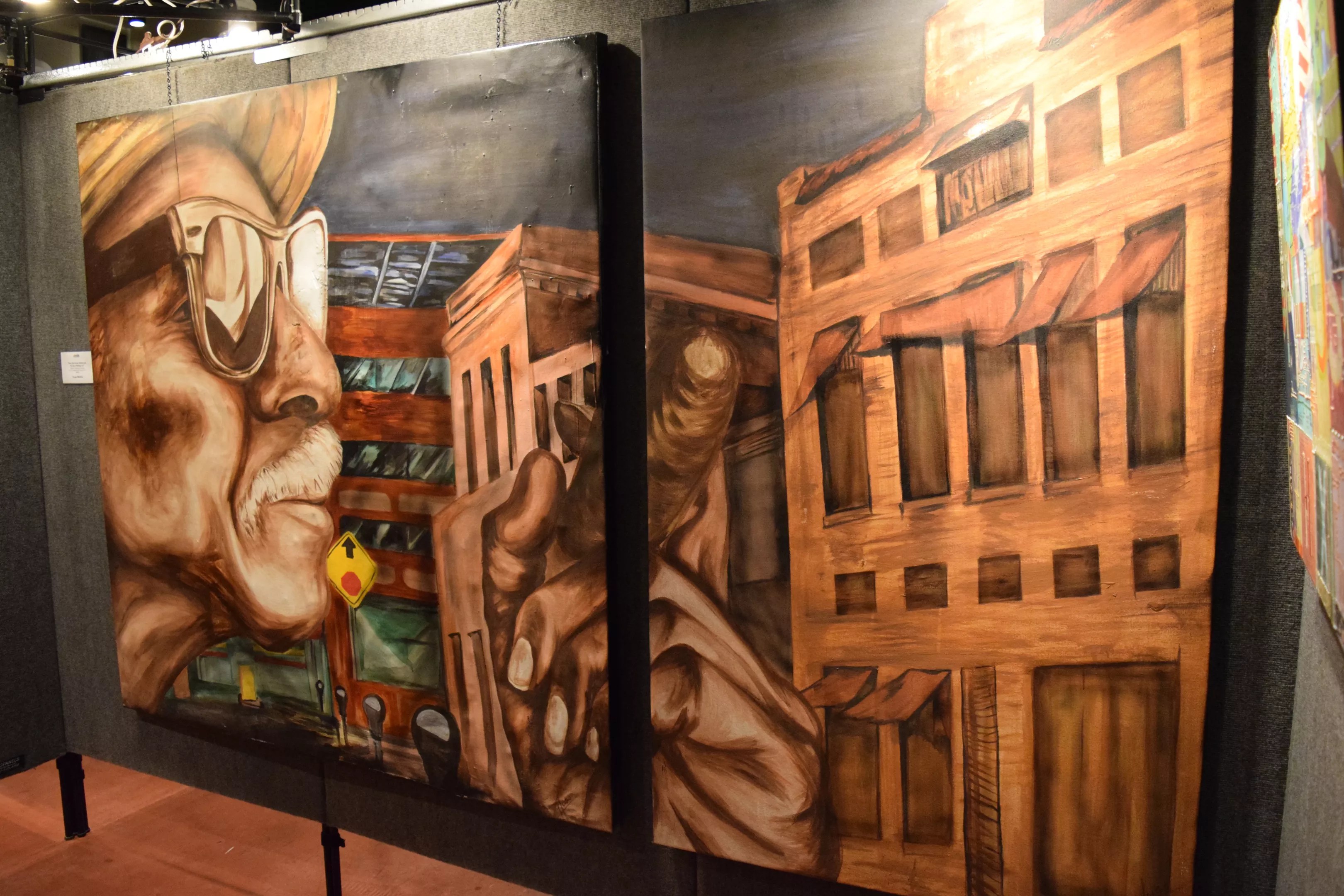 “Between the lines” See works by several artists, including Sue Eddy, at Herberger Theater Center. Herberger Theater Center “Memories of October and November” “Imagining the Abbey” See sculptures painted by the Fortoul Brothers in Roosevelt Row on Third Friday. Phoenix Suns “Sole of Phoenix” See work by Rick Rowen (detail shown above) and other artists at Alwun House. Alwun House “Monsters Menagerie” See works by Peter Millett at Bentley Gallery on October First Friday. Bentley Gallery Warehouse District See works by several artists at the Icehouse gallery. Icehouse gallery “Fearlessly Turbulent” See work by Keila Alaver (detail shown above) at Phoenix Art Museum. Keila Alaver/Photo by Lynn Trimble Central Avenue Corridor See work by Charlie Welch at Shortcut Gallery. Charlie Welch “You Can’t Go Home Again” See works exploring humans’ impact on nature at First Studio. First Studio “Armageddon: Threatened, Endangered, Extinct” Sunglasses at Night Work by Hugo Medina previously shown during an Artlink exhibit. Hugo Medina/Photo by Lynn Trimble Grand Avenue Other shows