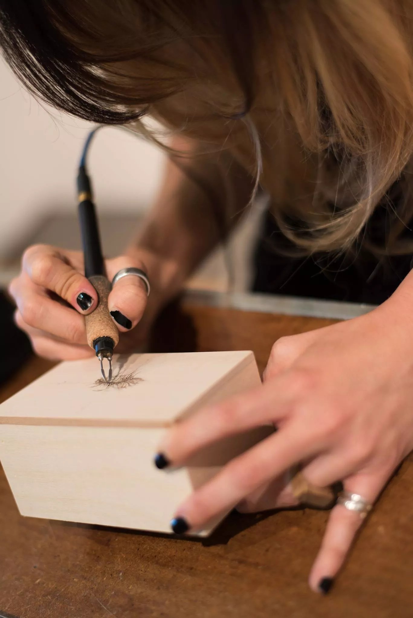 The exhibition is scheduled to open in February 2021 at Mesa Contemporary Arts Museum, in a gallery that’s dedicated to showcasing works by Arizona artists. Bowers specializes in wood-burning, often etching elements of the natural world such as birds and botanicals.
