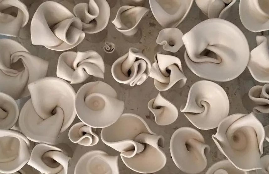Danielle Wood recently took her ocean-inspired ceramic art on the road. For the artist’s latest exhibition, “Symbiosis: Urbanity and the Natural Landscape,” she’s displaying photographs blending natural and urban landscapes accompanied by a wave-like installation of her ceramic forms.