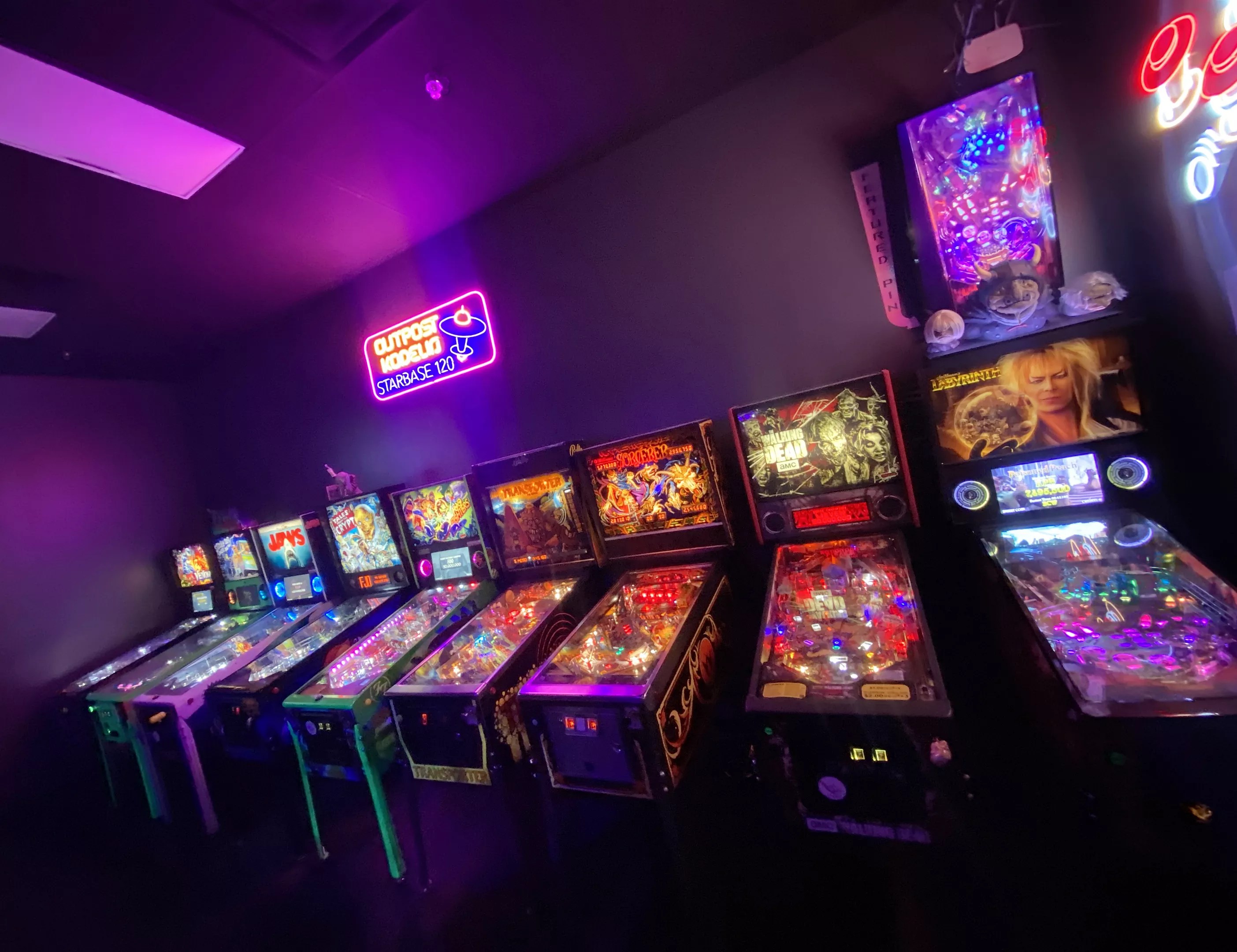 Pinball machines from the Outpost Kodelia arcade that operated inside Taproom-120 until earlier this year.