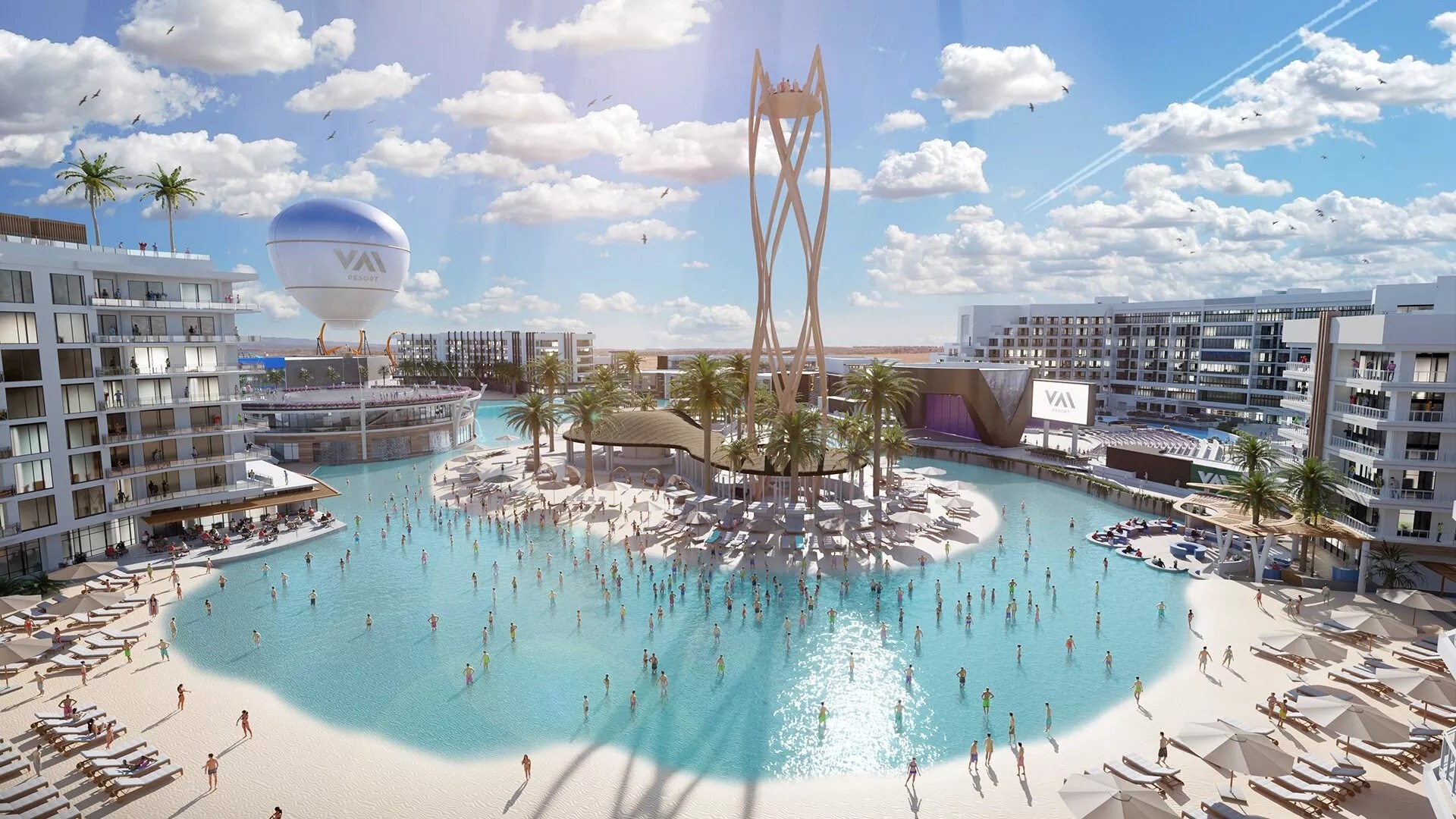 VAI Resort aims to become Arizona’s largest hotel and entertainment destination. In addition to hosting Mattel Adventure Park, the project will feature 1,100 hotel rooms, five acres of artificial beaches with temperature-controlled water, a two-story nightclub, an 11,000-seat concert amphitheater, a Euopean-style party island and a tethered hot air balloon ride offering panoramic views of the surrounding.