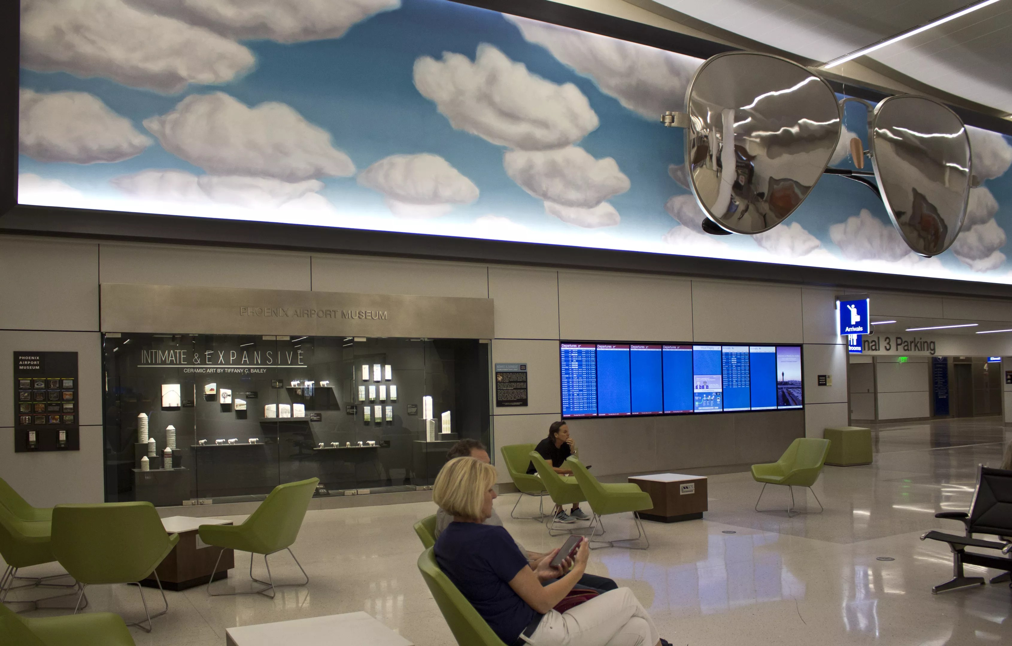 The majority of the airport’s exhibited works are displayed in prescreening areas, so you can enjoy them without passing through security. And much of the art at Sky Harbor is available for public viewing 24 hours a day.
