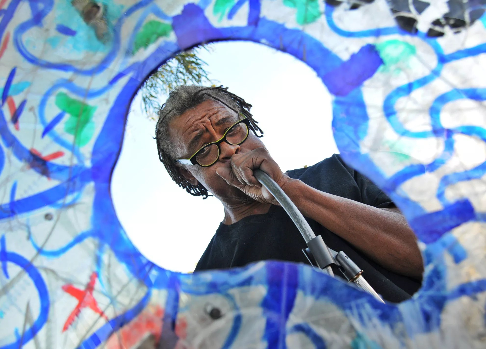Phoenix-based artist Joe Willie Smith creates sounds on an experimental art project and musical instrument .