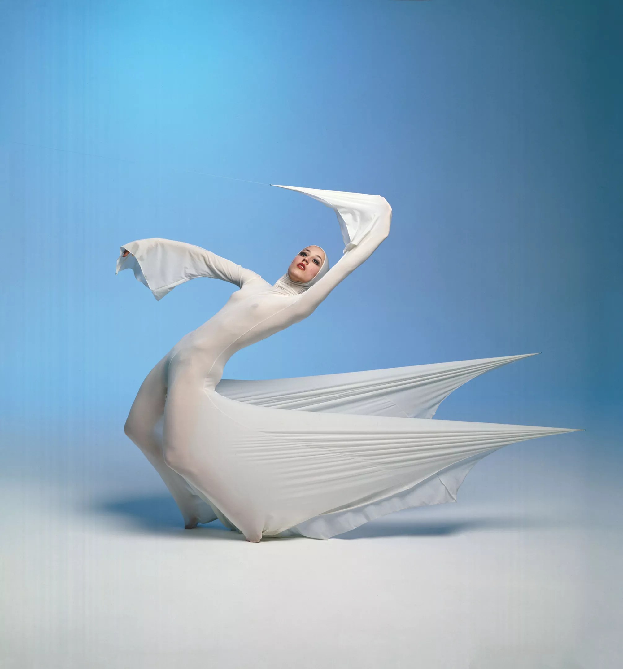 Dancer Serena Richardson in costume designed by Rudi Gernreich for the Lewitzky Dance Company’s Inscape production, 1976.