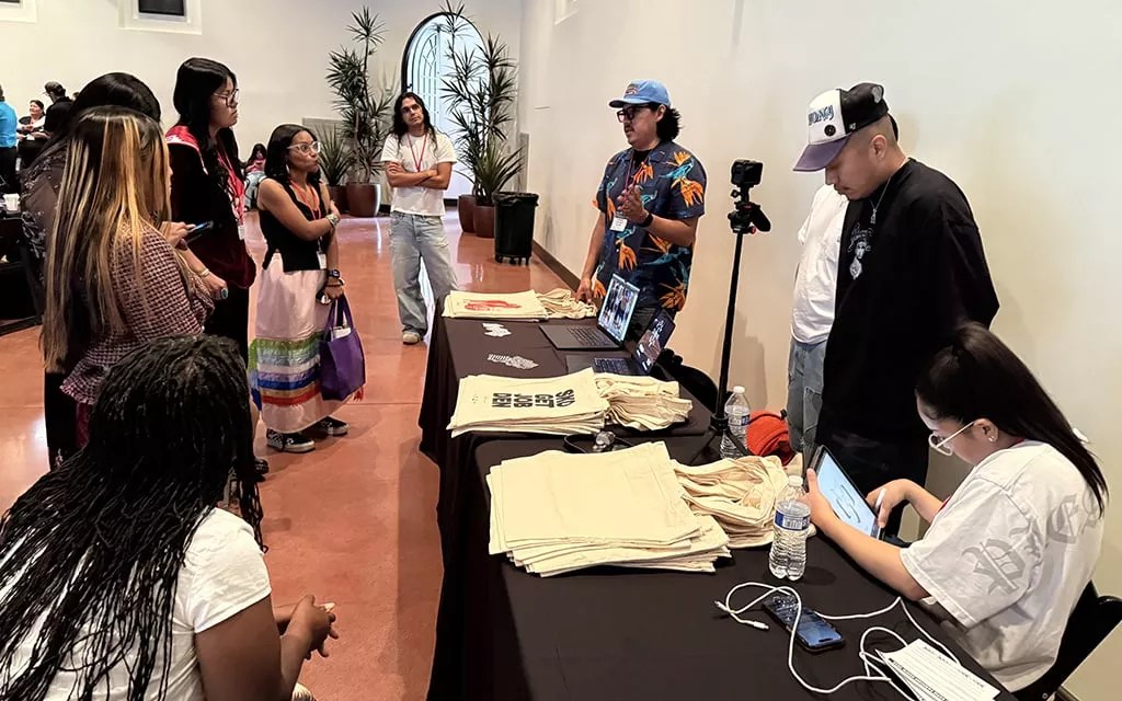 In a crowded auditorium, a group of Indigenous students stood shoulder to shoulder, eagerly waiting their turn to have their clothes screen printed by Homeland. The Native-led creative brand blends culture, music, fashion and community through hands-on workshops and cross-brand collaborations.