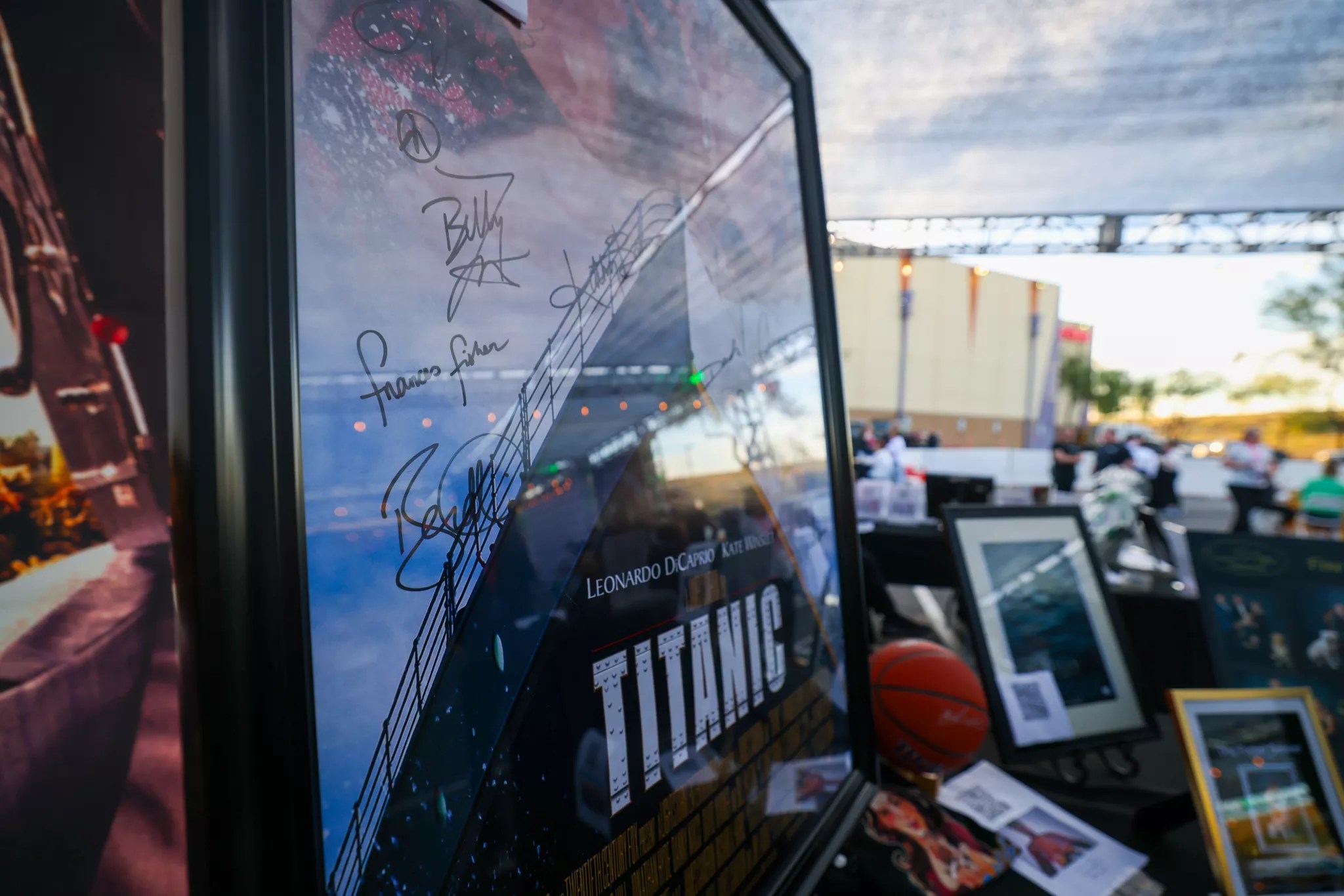A signed “Titanic” movie poster sits on the silent auction table at the Phoenix Film Festival’s opening night kickoff party.