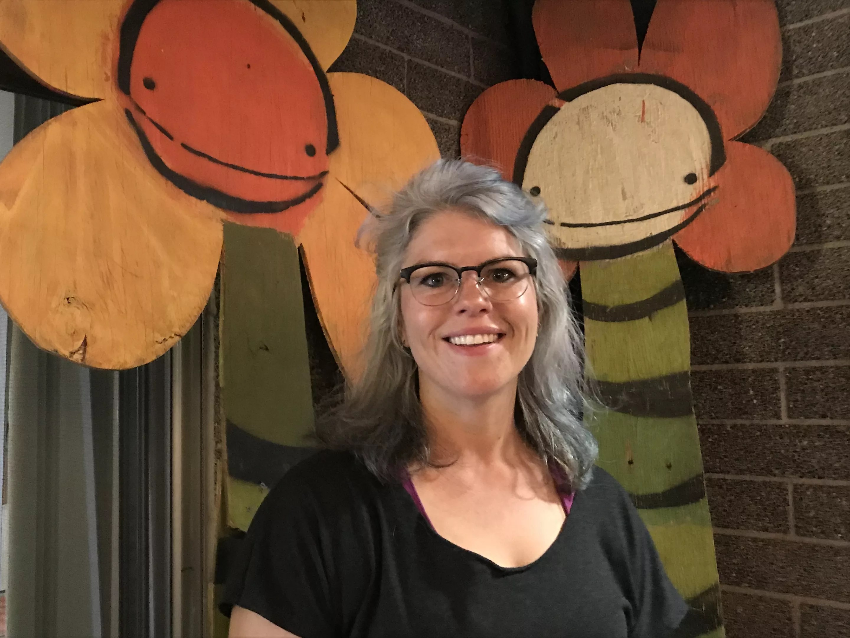 Kristin Wesley and two of her Friendly Flowers at her Oasis on Grand studio.