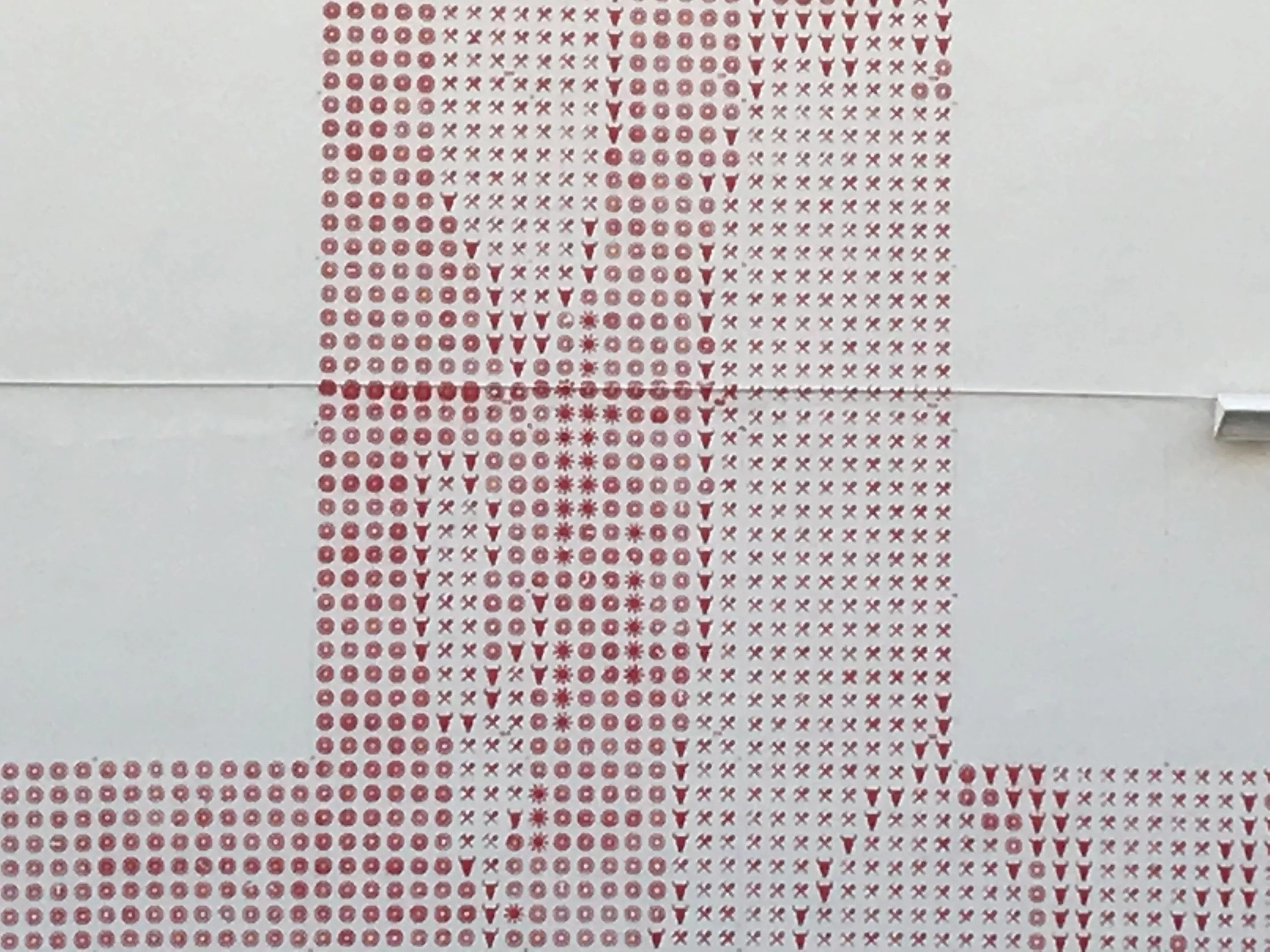 Bass reimagined a McCain portrait by Nigel Parry, creating a grid of 30,000 pictograms that form an image of McCain’s face along with a portion of the Arizona state flag. The pictograms are based on five Cs affiliated with Arizona history: cattle, citrus, climate, copper, and cotton. The design calls for painting them red and blue.
