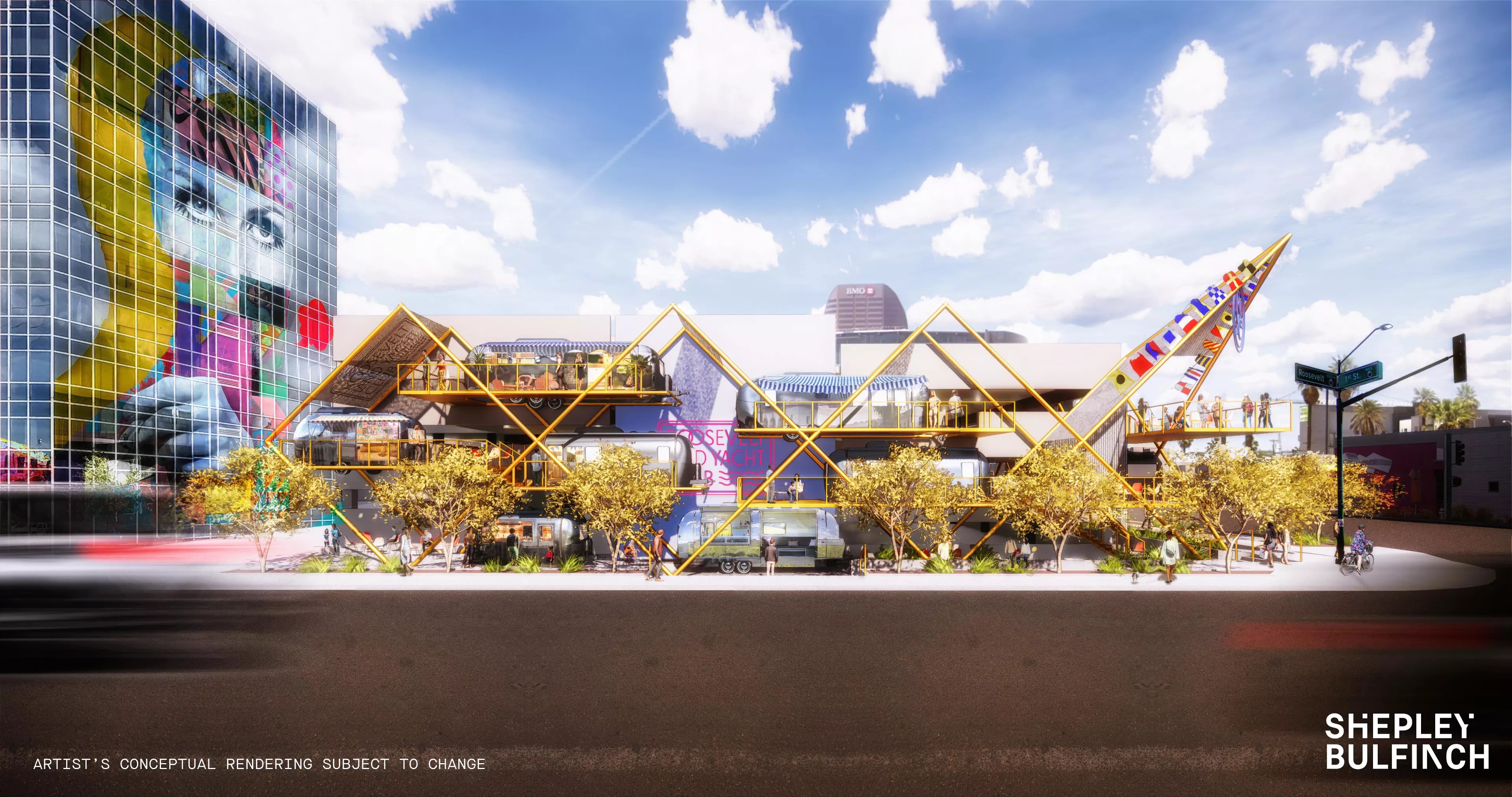 It’s in the conceptual stage at this point, but True North Studio is getting ready to start the design review process with the city of Phoenix, which will have to approve the design and issue needed permits before it all comes together. The design also includes architectural elements and landscaping.