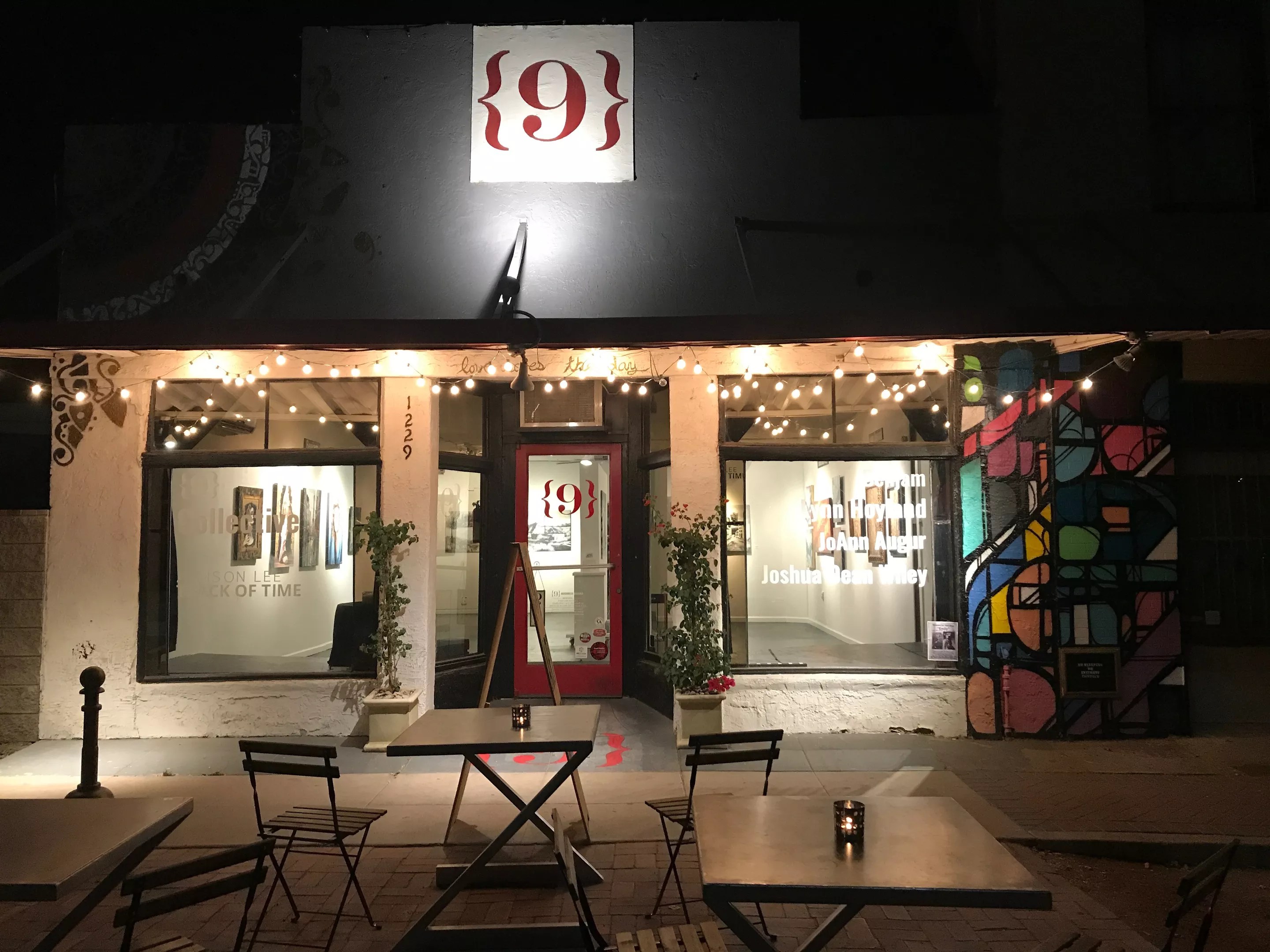 Dragon named the gallery for the number nine, which has proven significant at various times in her life. “The brackets represent all the possibilities for what’s between them,” she told Phoenix New Times in March 2018. That’s when Dragon announced that she would no longer be managing the space.