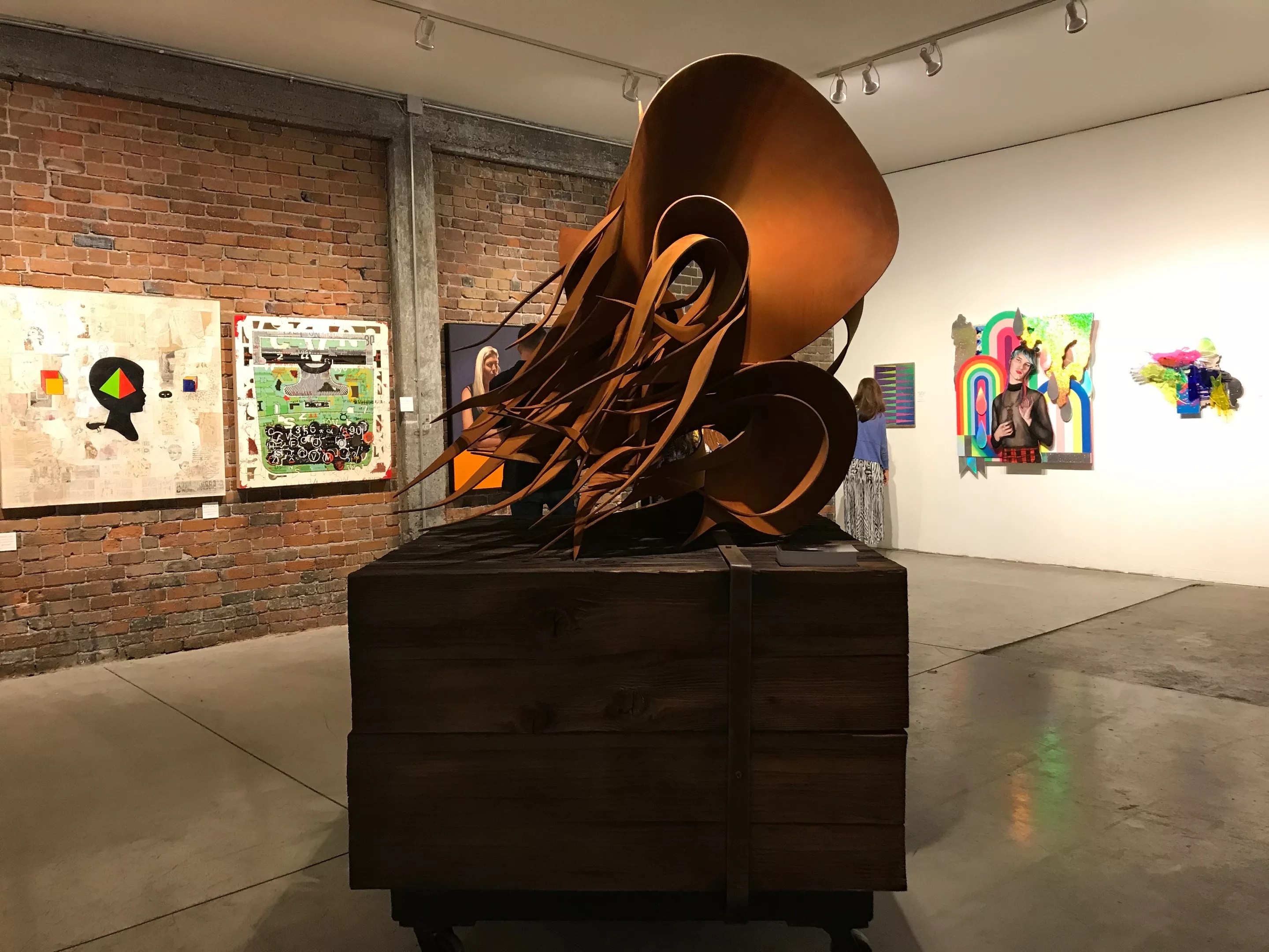 Several additional “Chaos Theory 19” artists, including Pete Deise and Joe Willie Smith, are best-known for sculptural works. John Randall Nelson, the artist whose 26-foot rabbit called One-Eyed Jack was just installed in Scottsdale, is also part of this year’s show. Deise’s latest claim to fame includes creating the city’s first shipping container sculpture.