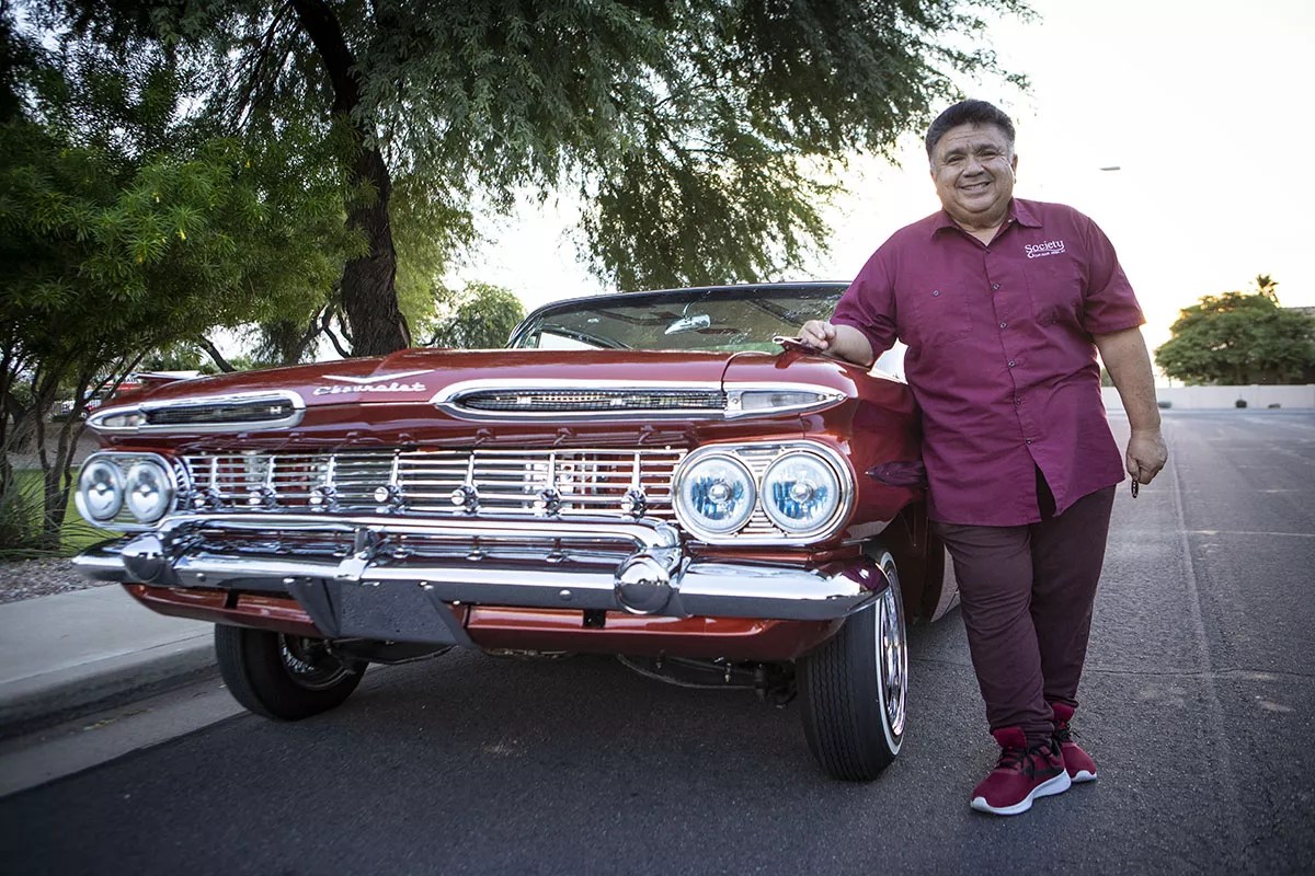 He found lowriders when he ventured into Phoenix. “I was like, ‘There they are!’ We cruised Central back then, we cruised Encanto Park. The ’70s were different; it wasn’t all fun and games. It was more territorial, it was rough around the edges, you had council wars. The car clubs were just evolving, and lowriders were still part of the neighborhood gangs. A lot of lowriders were into bad things, illegal things.”
