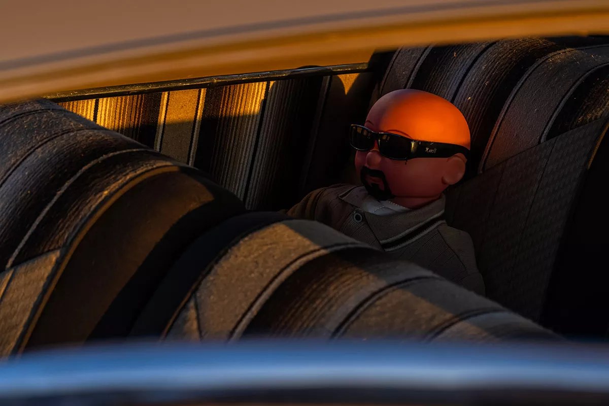 “It’s about a vato loco from Los Angeles,” Tony says of the narrative painted onto his car, whose name is Cholo. In the story, God brings the man a beautiful wife and six precious daughters, and he’s happy until one day when the man’s wife tells him she’s moving to Colorado and taking their babies with her. The man is heartbroken and begins thinking about his life: stupid mistakes he made, incarcerations, his beloved brother who’s doing 40 years, his mother’s death. He begins painting his sorrow onto his car – a fist crushing a heart; a father reading a letter from his daughters and weeping; a marionette manipulated by a demon. After a while, the man runs out of sad stories and decides to paint his daughters onto the door of his car, so they’ll always be riding with him. He begins to think about the joy his children bring him, and his sadness leaves him.