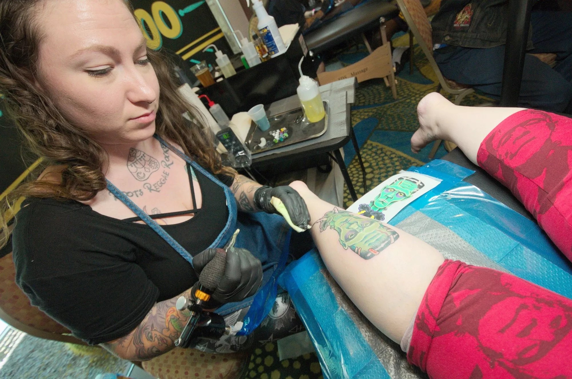 A Mad Monster attendee gets a tattoo of Frankenstein’s monster.