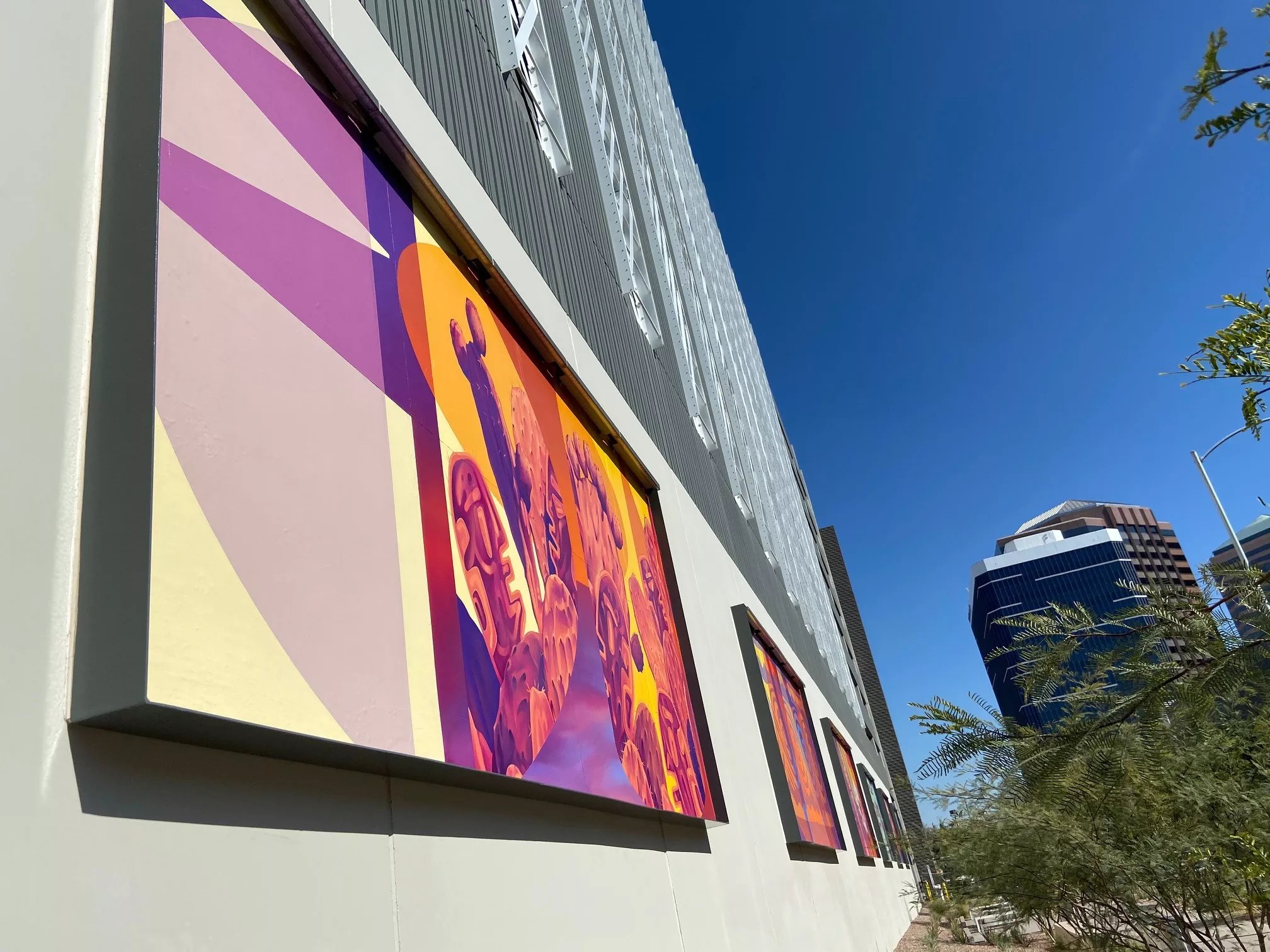 Mesa Historical Museum will open a new exhibit titled “Play Ball: The Arizona Spring Training Experience,” which highlights the history of spring training, the origins of the Cactus League, the Cactus League Hall of Fame, and 100 years of baseball history in Mesa. The exhibit includes photos, artifacts, and additional historical materials. The grand opening ceremony will take place at 10 a.m. on Saturday, March 6. Three artists created work for the Catalina Parking Garage at Park Central Mall. City of Phoenix