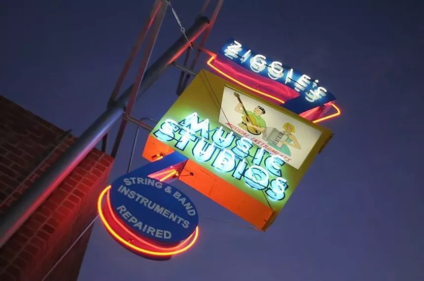 The neon sign for the now-defunct Ziggie’s Music in Phoenix, which will eventually make its way to downtown Mesa.