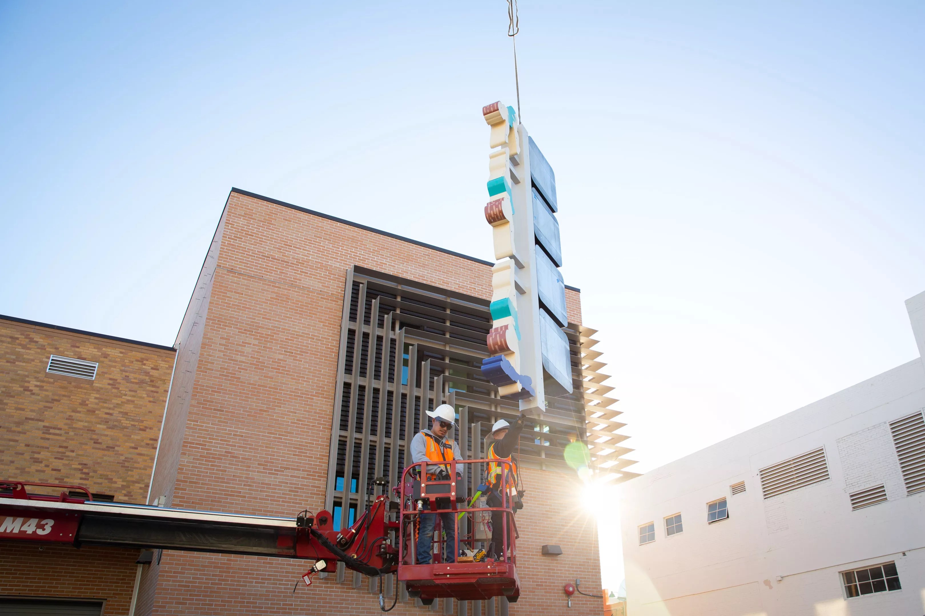 City of Mesa workers install a replica of the Diving Lady sign created by local neon artist Larry Graham.