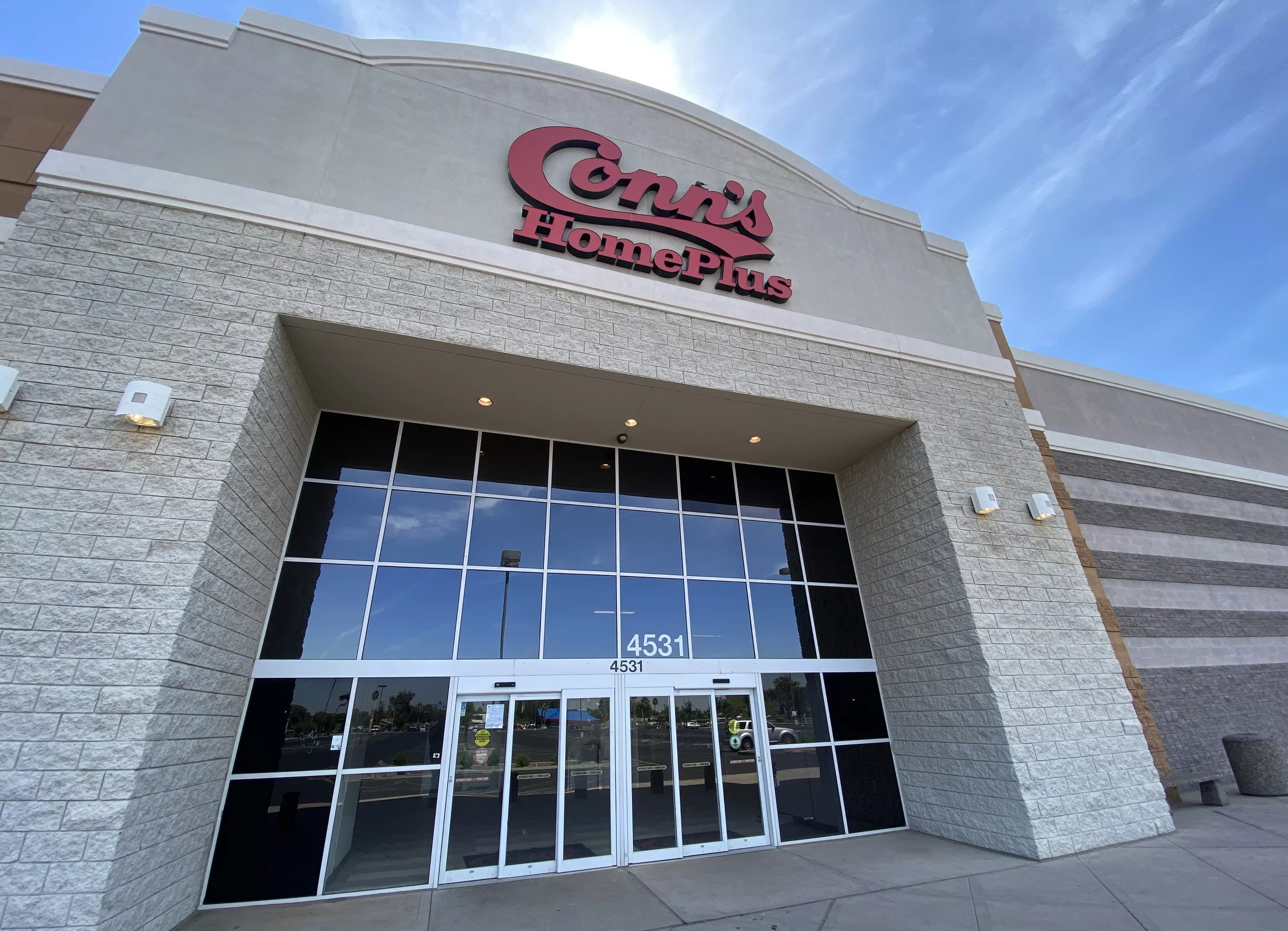 A former location of Conn’s HomePlus at Arcadia Crossing in Phoenix, where a building permit listing Micro Center was recently posted.