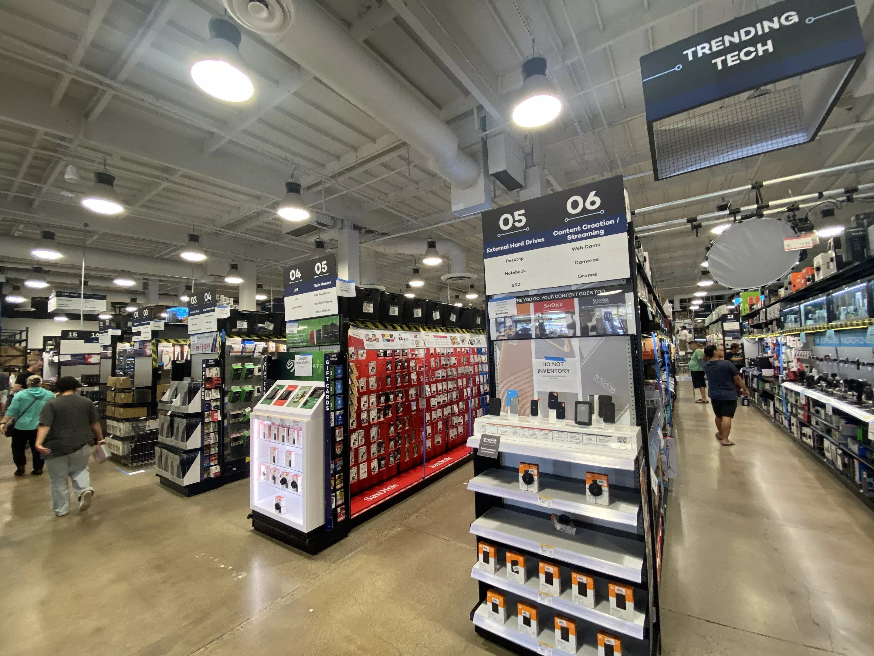 Aisles of PC components and tech accessories at Micro Center’s store in Tustin, California.