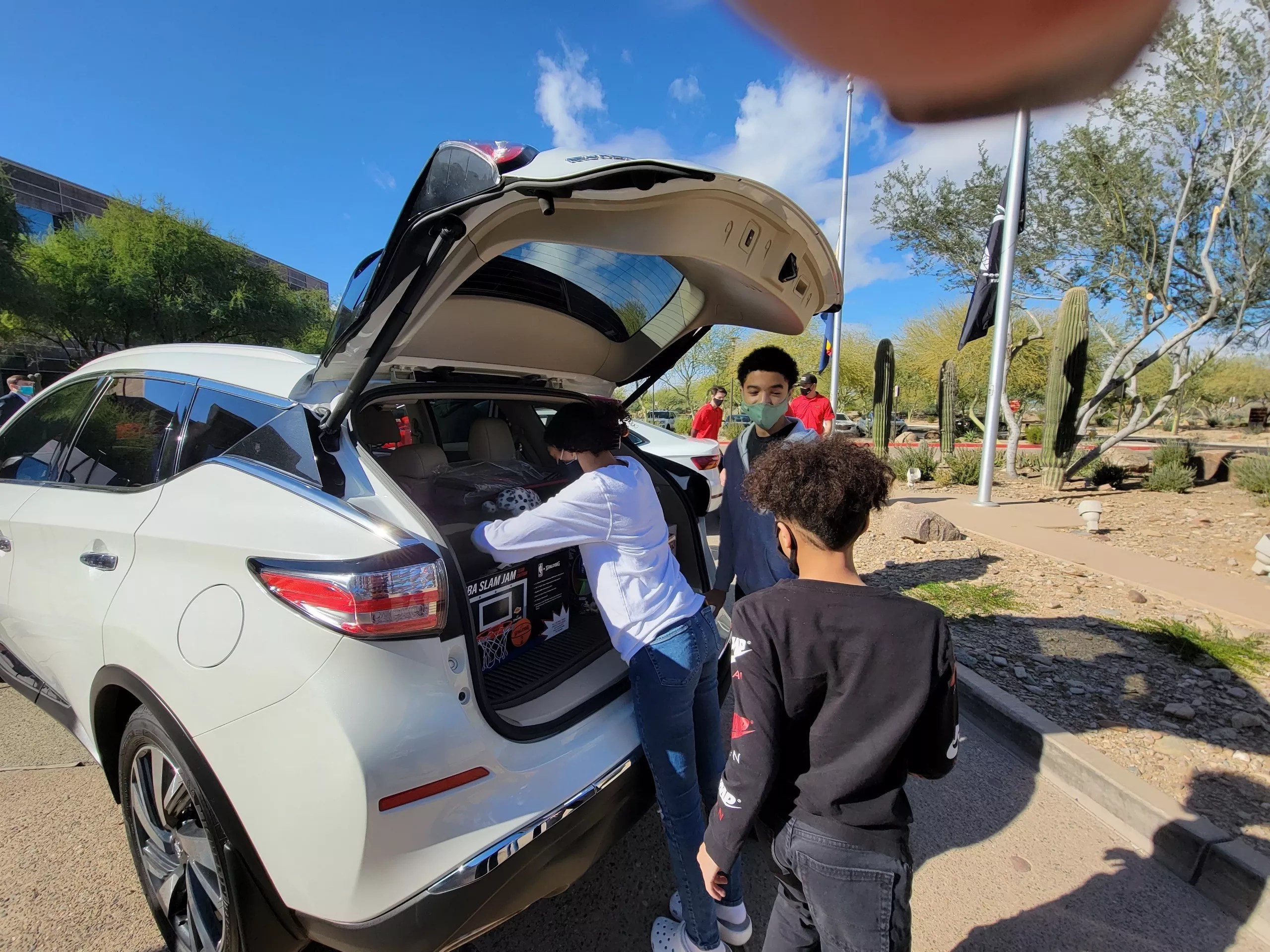 A military family loads toys into their trunk after receiving a donated vehicle through Military Assistance Mission’s partnership with USAA and Caliber, which helps service members with reliable transportation.
